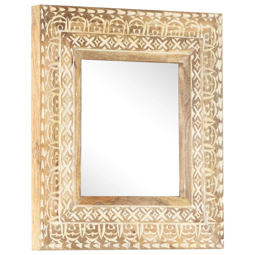 Dieser Spiegel mit Rahmen aus handgeschnitztem Holz ist viel mehr als nur ein praktisches Element für den alltäglichen Gebrauch, er stellt auch eine ästhetische Dekoration für Ihr Zuhause dar. Der Rahmen des Spiegels ist aus massivem Massivholzholz gefertigt, einem tropischen Hartholz, das belastbar, verschleißfest, robust und langlebig ist. Die Handwerkskunst und die schöne Holzmaserung machen jedes Stück zu einem Unikat. Darüber hinaus trägt das handgeschnitzte Muster zur Schönheit des Spiegels bei. Wichtiger Hinweis: Farben und Maserung variieren von Möbelstück zu Möbelstück, was jedes Sideboard einzigartig macht. Die Lieferung erfolgt nach dem Zufallsprinzip.