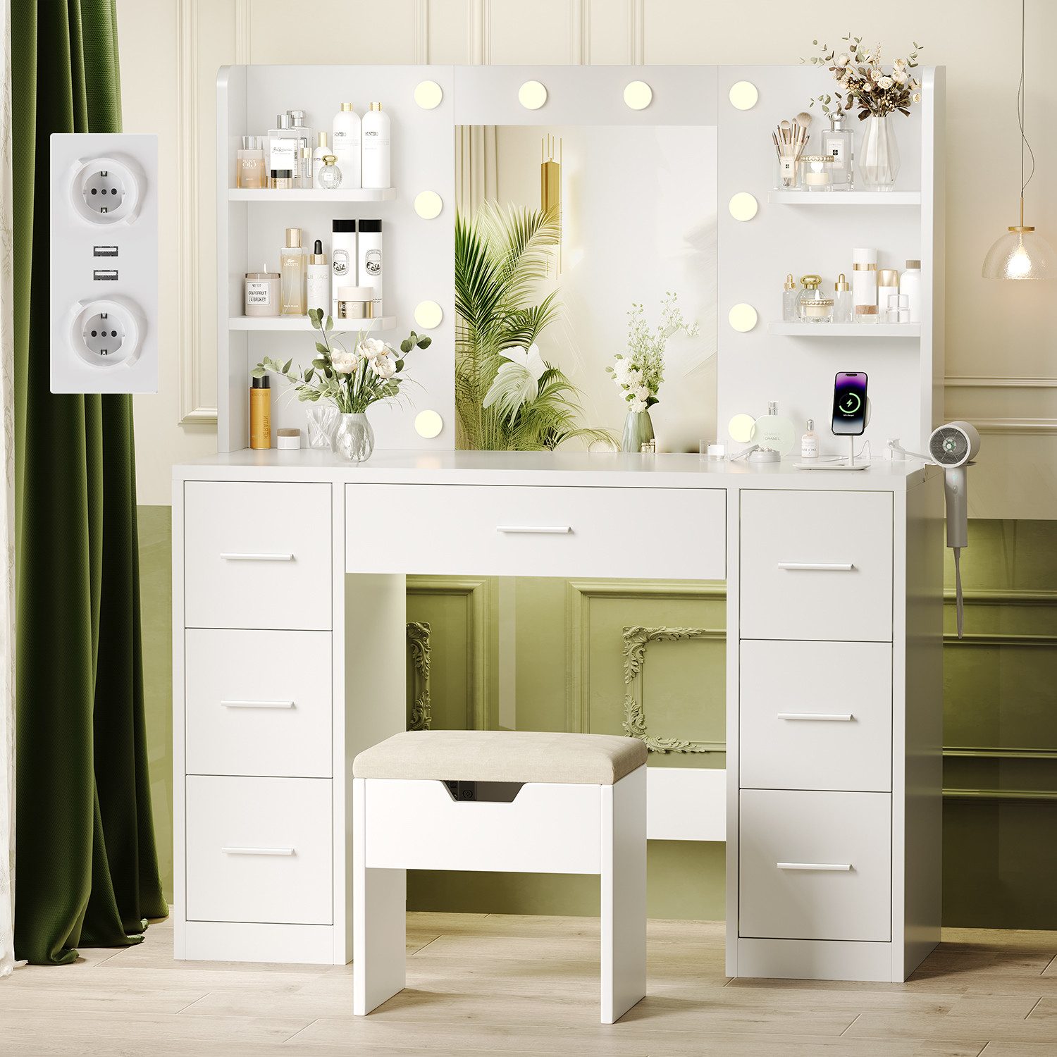 7 Schubladen: die obere Schublade eignet sich zur Aufbewahrung von Kosmetika, Parfüm und anderen kleinen Schönheitsprodukten; in der unteren Schublade können Haarpflegegeräte wie Lockenstäbe, Kämme usw. aufbewahrt werden, die übersichtlich geordnet und leicht zugänglich sind