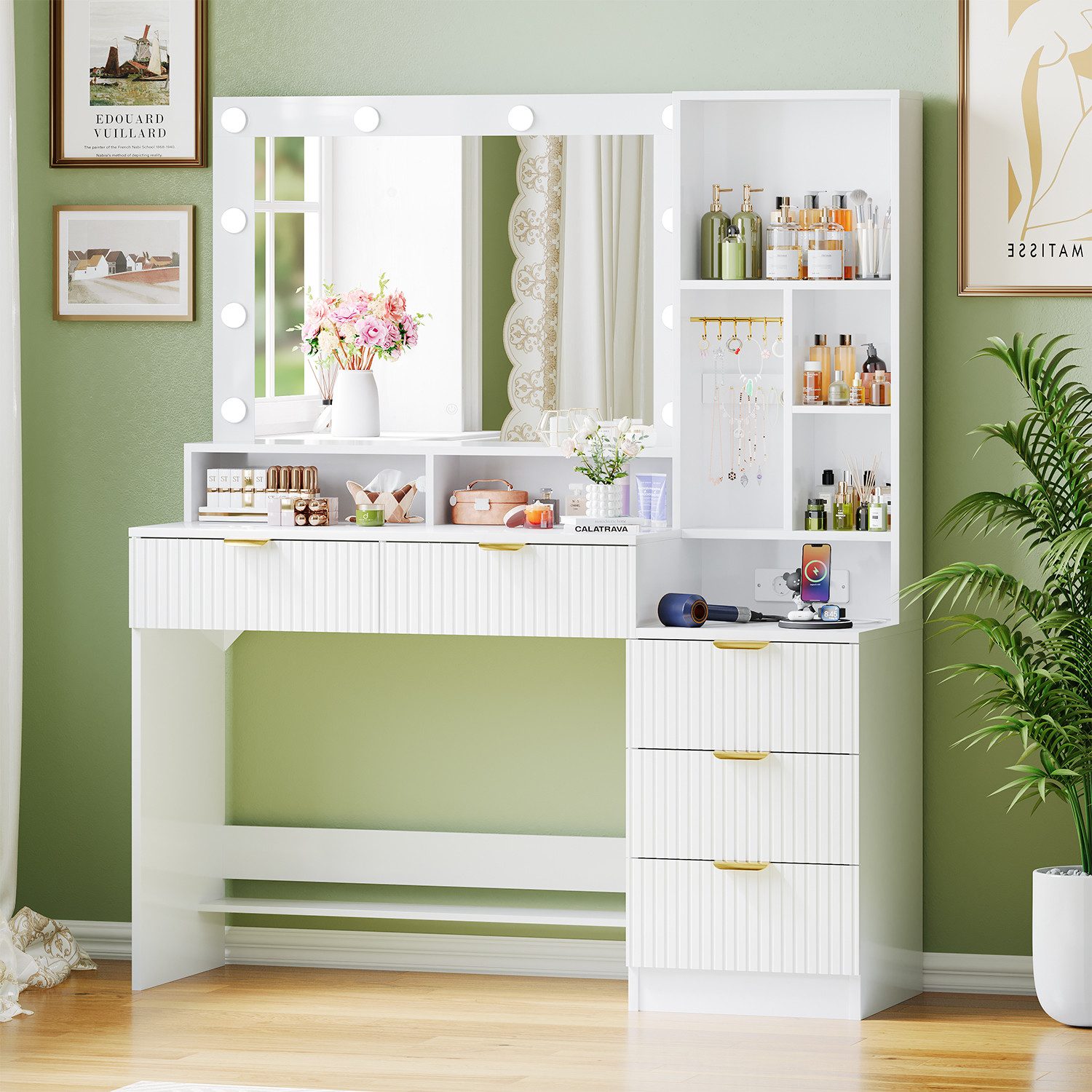 Offene Staufächer: Mit 7 offenen Fächern, ideal für häufig verwendete Hautpflegeprodukte (Tonics, Lotionen, Cremes usw.), Aromatherapie-Artikel und Wattepads. Die Artikel bleiben sichtbar und leicht zugänglich, was die tägliche Effizienz erhöht.