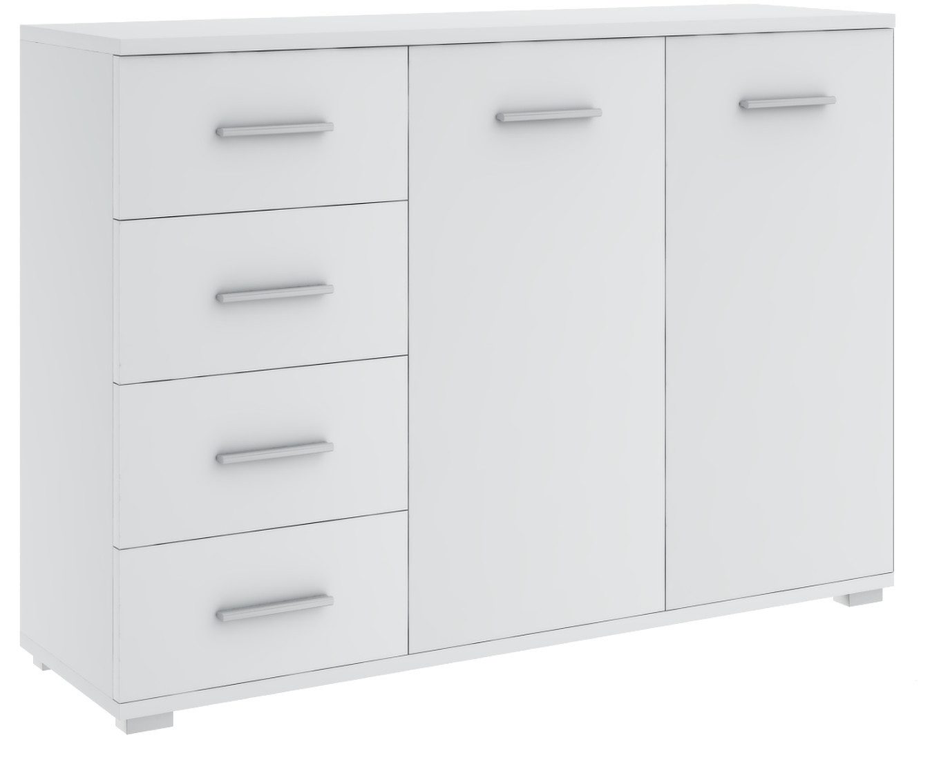 Mit vier geräumigen Schubladen und zwei Türen bietet sie viel Platz zur Aufbewahrung von Kleidung, Dokumenten oder Haushaltsgegenständen.