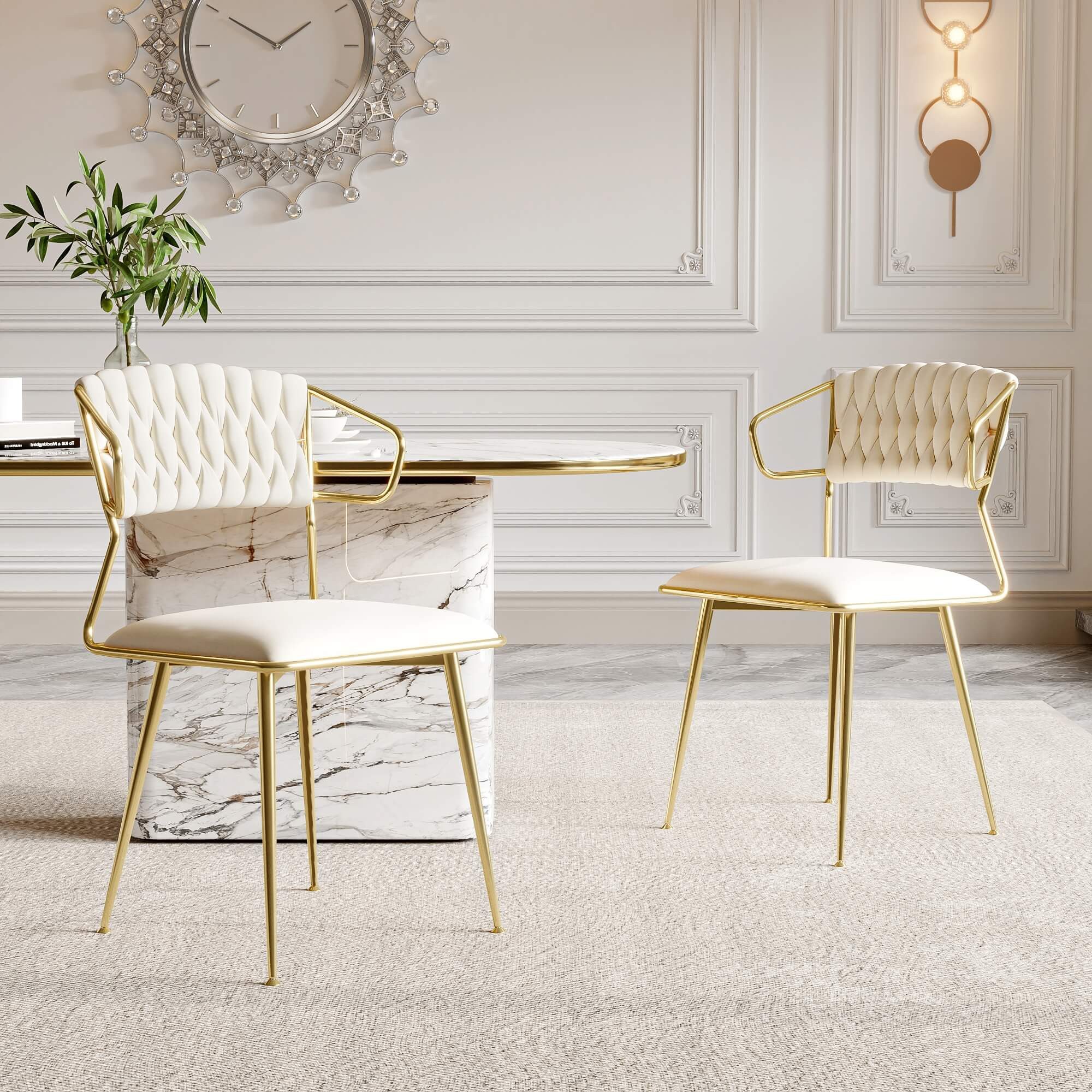 Dieser Esszimmerstuhl wird für hervorragende Stabilität von 4 stabilen Metallbeinen getragen und ist robust genug, um ein Gewicht von 150 kg zu tragen.