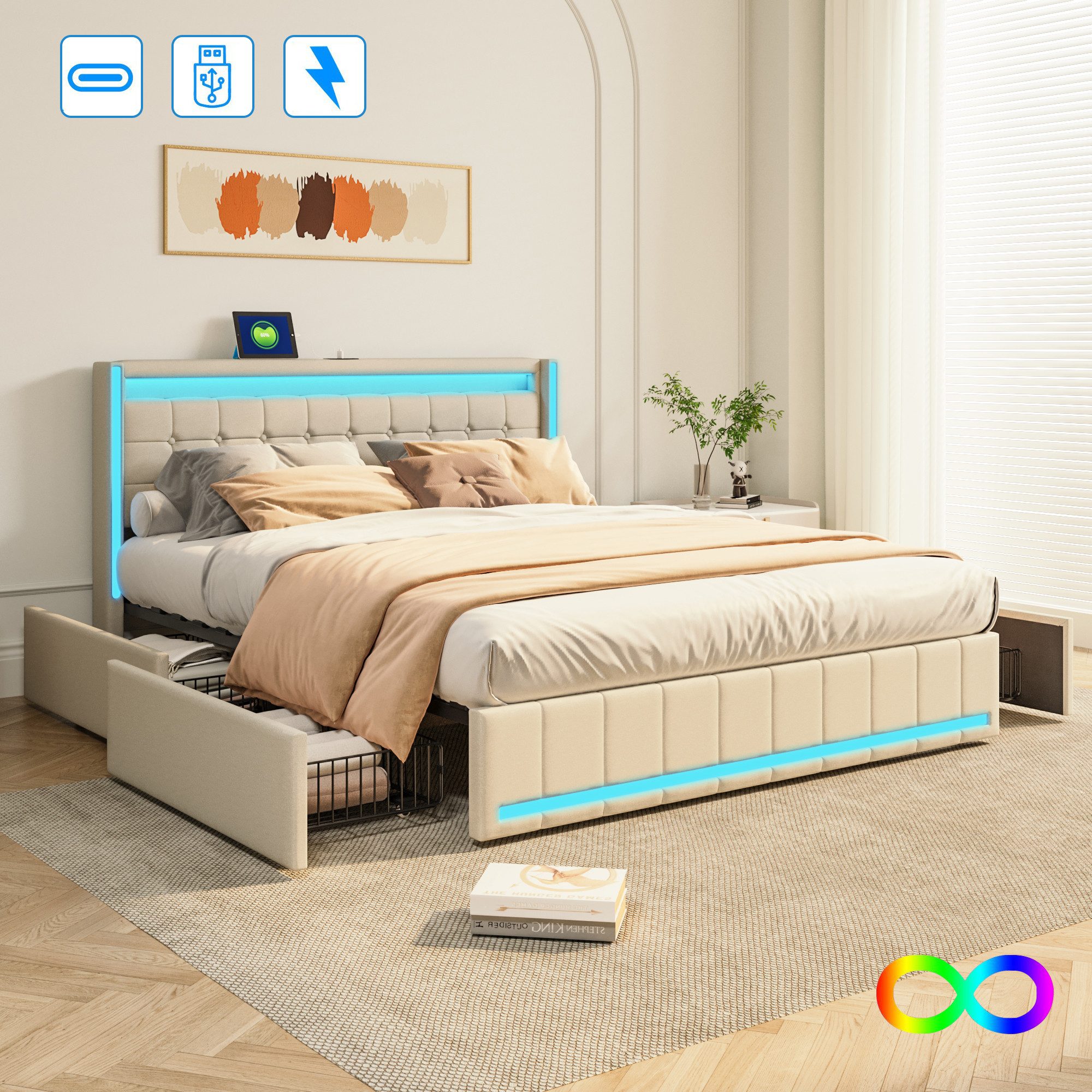 Gönnen Sie sich ein einzigartiges Schlaferlebnis mit unserem stilvollen LED Polsterbett! Dieses Bettgestell kombiniert eine moderne Ästhetik mit Funktionalität, um Ihr Schlafzimmer in eine Wohlfühloase zu verwandeln.