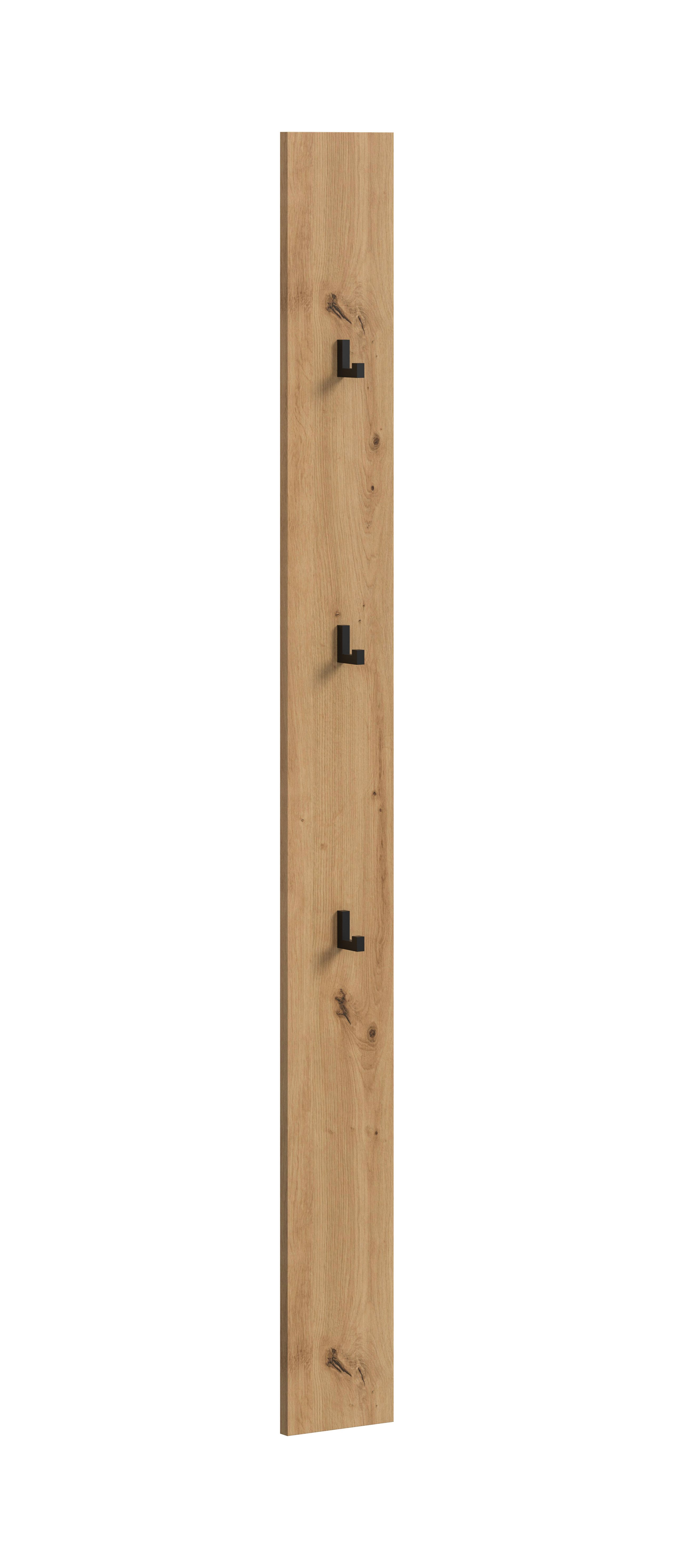 Dieses Garderobenpaneel in stilvoller Artisan Oak Nachbildung kombiniert modernes Design mit praktischer Funktionalität. Die warme Holzoptik mit natürlicher Maserung sorgt für ein wohnliches Ambiente und setzt einen eleganten Akzent im Eingangsbereich. Drei stabile, schwarze Metallhaken bieten ausreichend Platz für Jacken, Taschen und Accessoires. Durch die schmale, platzsparende Form fügt sich das Paneel harmonisch in kleine wie große Flure ein und schafft sofort Ordnung und Übersicht. Die pflegeleichte Oberfläche ist hochwertig verarbeitet, widerstandsfähig und leicht zu reinigen. Dank der einfachen Montage ist das Paneel im Handumdrehen befestigt und sofort einsatzbereit. Gefertigt aus FSC®-zertifiziertem Holzwerkstoff steht das Paneel für Эко-товары, Qualität und langlebige Materialien. Kombiniert mit weiteren Möbeln der Serie entsteht ein stimmiges, modernes Wohnkonzept.