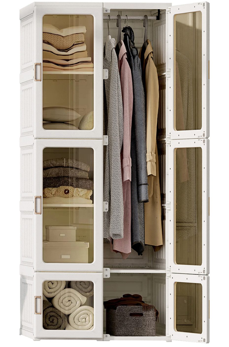 Der Kleiderschrank ist 69cm breit, 50cm tief und 170cm hoch, genau entworfen, um eine Vielzahl von Raumlayouts zu passen, ob es ein Schlafzimmer, Wohnzimmer oder Balkon ist, können Sie den richtigen Platz finden, um es zu setzen.