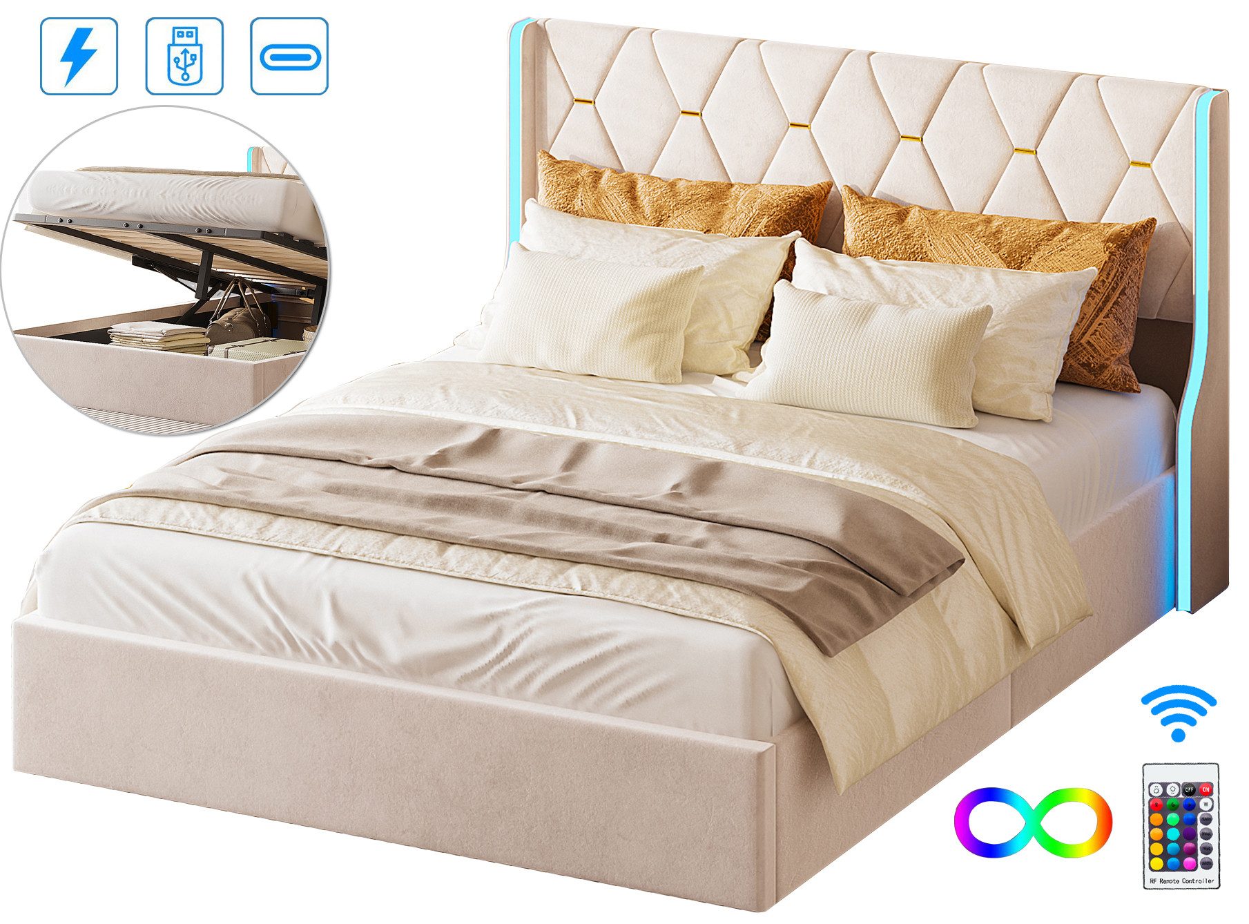 Speicherplatz: Unter dem Rahmenrahmen des Polsterbett gibt es einen großen Speicherplatz, in dem Ihre Blätter, Quilts, Kissen und andere Gegenstände platziert werden können, die Ihr Zimmer sauber und ordentlich machen können.