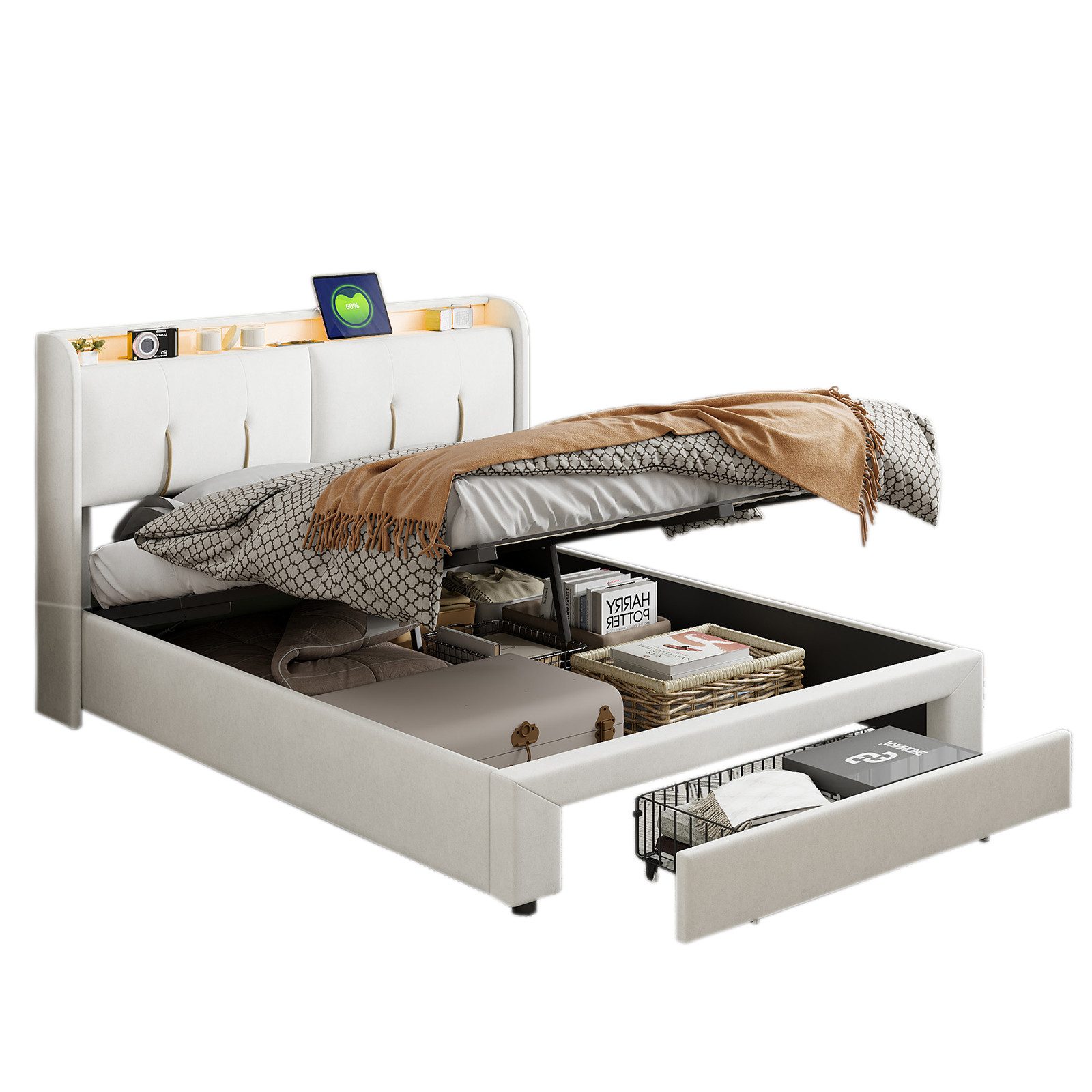1 x Polsterbett Stauraumbett