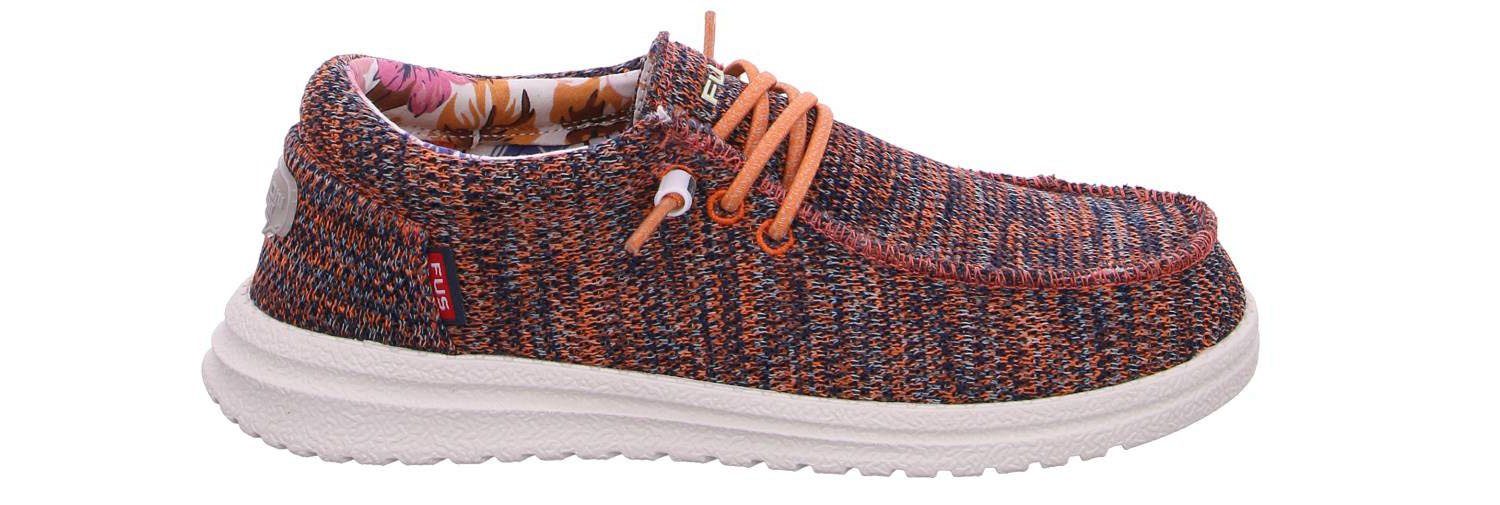 Der Fusion Emma Sneaker - dessen Form ohnehin einer der meist getragenen Schuharten ist - ist ein Muss für jeden Schuhschrank. Die Damenschuhe haben einen Low-Cut-Schnitt, was bedeutet, dass sie unter dem Knöchel des Trägers enden. Der Artikel zählt zweifelsohne zur größten unserer Produktkategorien, dem Freizeitschuhe und Casualwear Bereich. Eine gute Wahl, wenn es um die schönste Zeit des Tages geht. Die Schuhe lassen sich einfach und bequem per Schnürsenkel öffnen und schließen. Das Obermaterial der Schuhe besteht aus Synthetik und das Innenmaterial aus Textil. Der Schuh bietet absolute Wellness für die Füße. Ein federeleichter, sommerlicher Slipper, der mit poppigen Farben und einem Korkfußbett mit Aktivkohlepartikeln hervorsticht. Entdecke den Sommer neu – jeder Schritt ist leicht wie eine Sommerbrise.