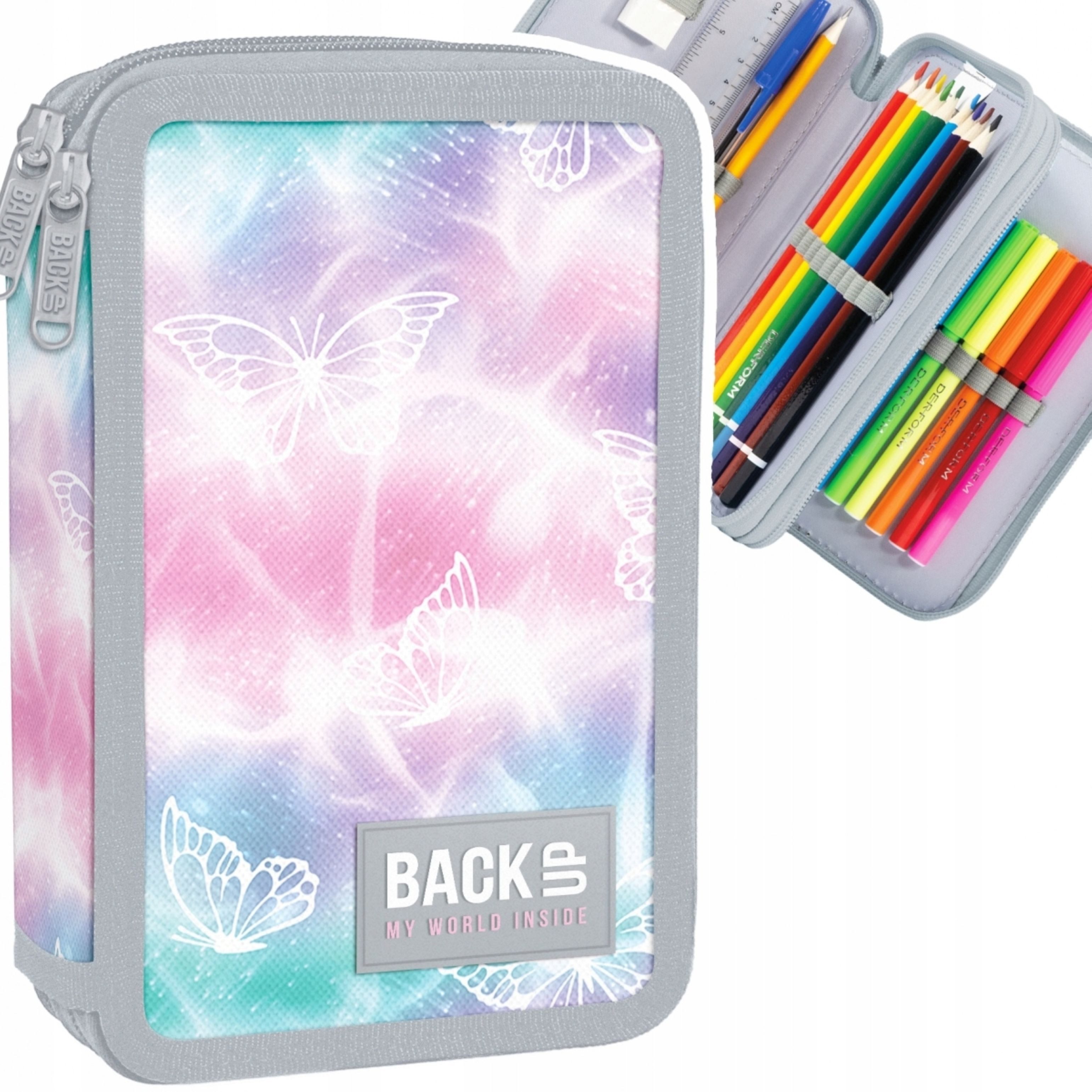 BackUP Federmäppchen mit Inhalt – Pastell Schmetterlinge (PB6DW10) Praktisch, farbenfroh und komplett ausgestattet – ideal für kleine Schulstarter! Dieses zweifach unterteilte Federmäppchen im zauberhaften Schmetterlingsdesign begeistert junge Schülerinnen und sorgt für Ordnung im Schulalltag. Perfekt für Grundschule und Zuhause.