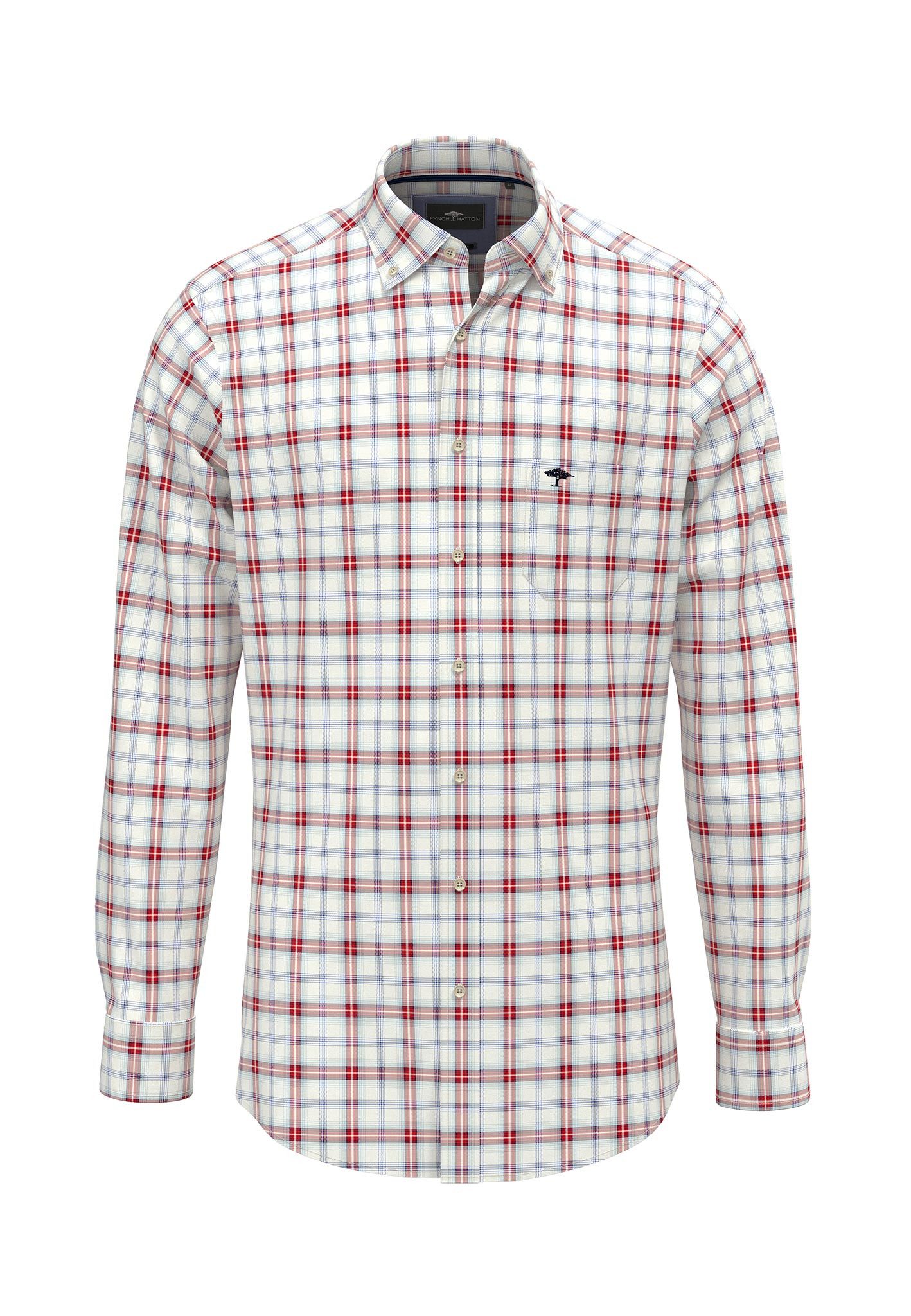Mit dem Karohemd von FYNCH-HATTON stellst du im Handumdrehen ein neues Outfit zusammen. Die Logostickerei macht das Hemd individuell und peppig. Der Button-down-Kragen kommt ohne Kragenstäbchen und gestärkte Krageneinlage aus, denn kleine Knöpfe fixieren die Kragenspitzen und sorgen für guten Halt bei jeder Bewegung. Die langen Ärmel enden in einer Manschette. Dieses Hemd ist taillenbedeckend sowie basic geschnitten, wodurch dein Oberkörper locker umspielt wird.