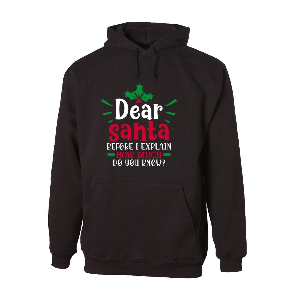 G-graphics Hoodie Dear Santa before I explain – How much do you know? Unisex mit trendigem Frontprint mit Weihnachtsmotiv