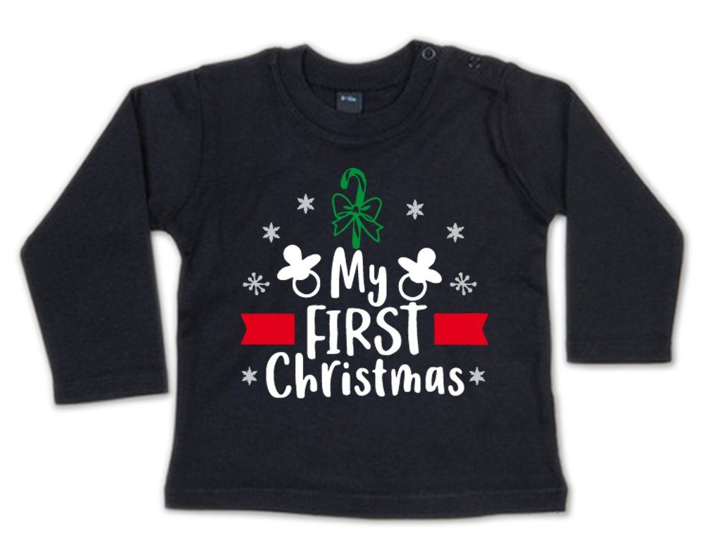 Besondere Merkmale | Baby Sweater / Longsleeve T mit Spruch mit Weihnachtsmotiv |