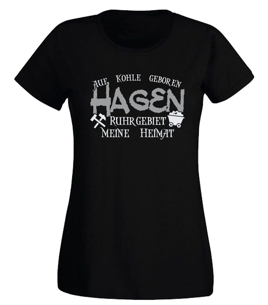 G-graphics T-Shirt Auf Kohle geboren – HAGEN – Ruhrgebiet – Meine Heimat Slim-fit Damen T-Shirt mit Ruhrgebietsmotiv