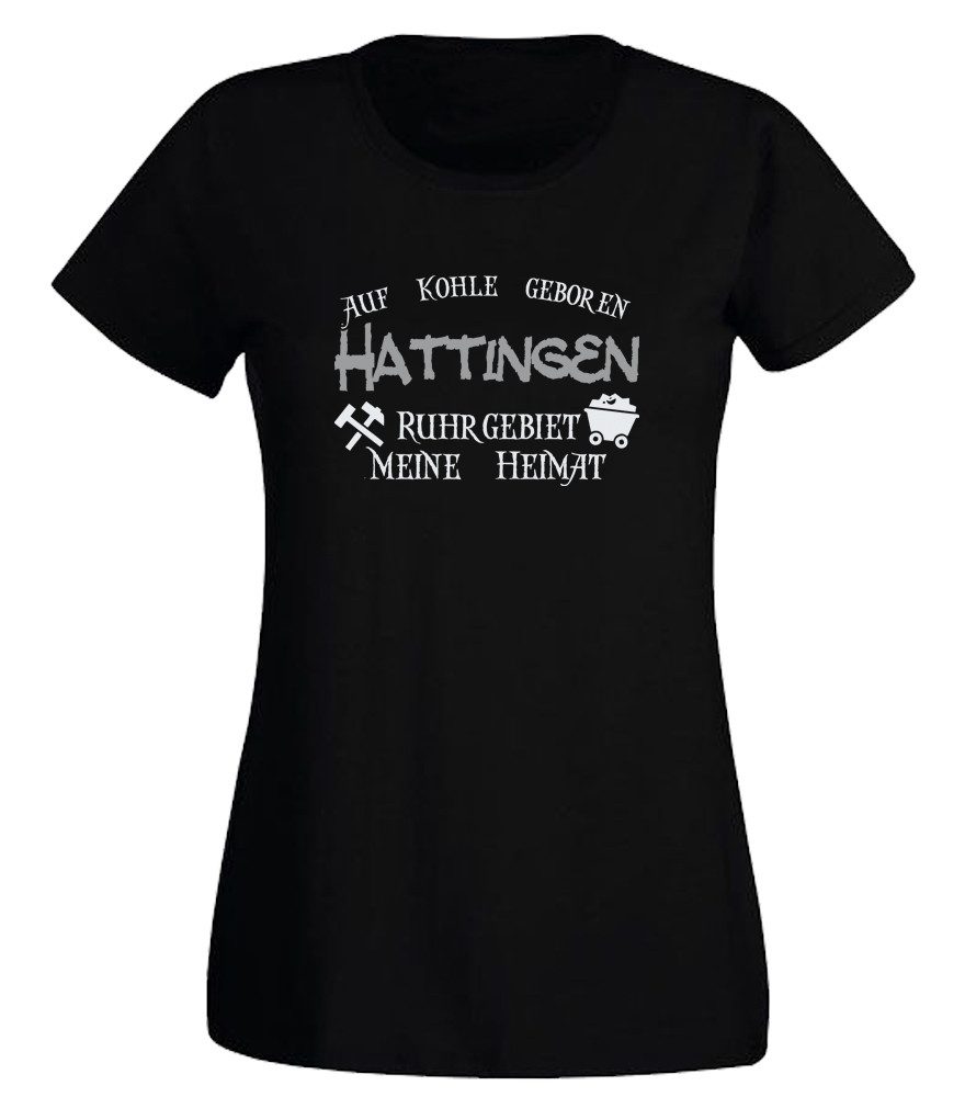 G-graphics T-Shirt Auf Kohle geboren – HATTINGEN – Ruhrgebiet – Meine Heimat Slim-fit Damen T-Shirt mit Ruhrgebietsmotiv