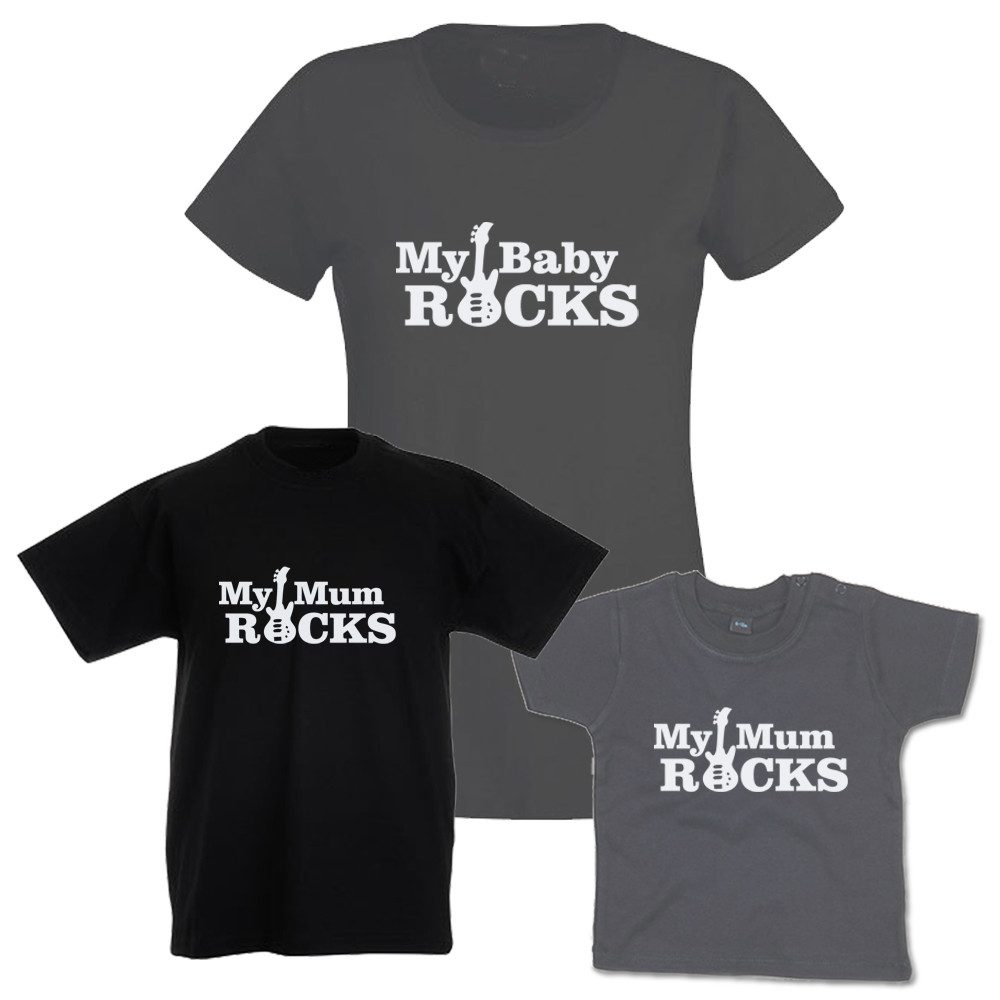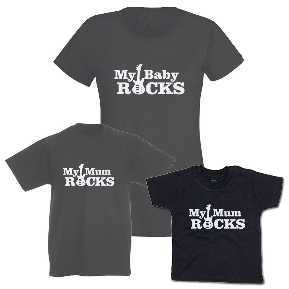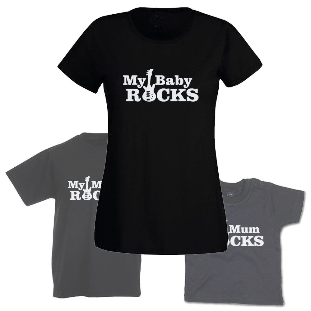 G-graphics T-Shirt My Baby rocks & My Mum rocks (Familienset, Einzelteile zum selbst zusammenstellen) Kinder- & Erwachsenen-T-Shirt-Set mit Frontprint