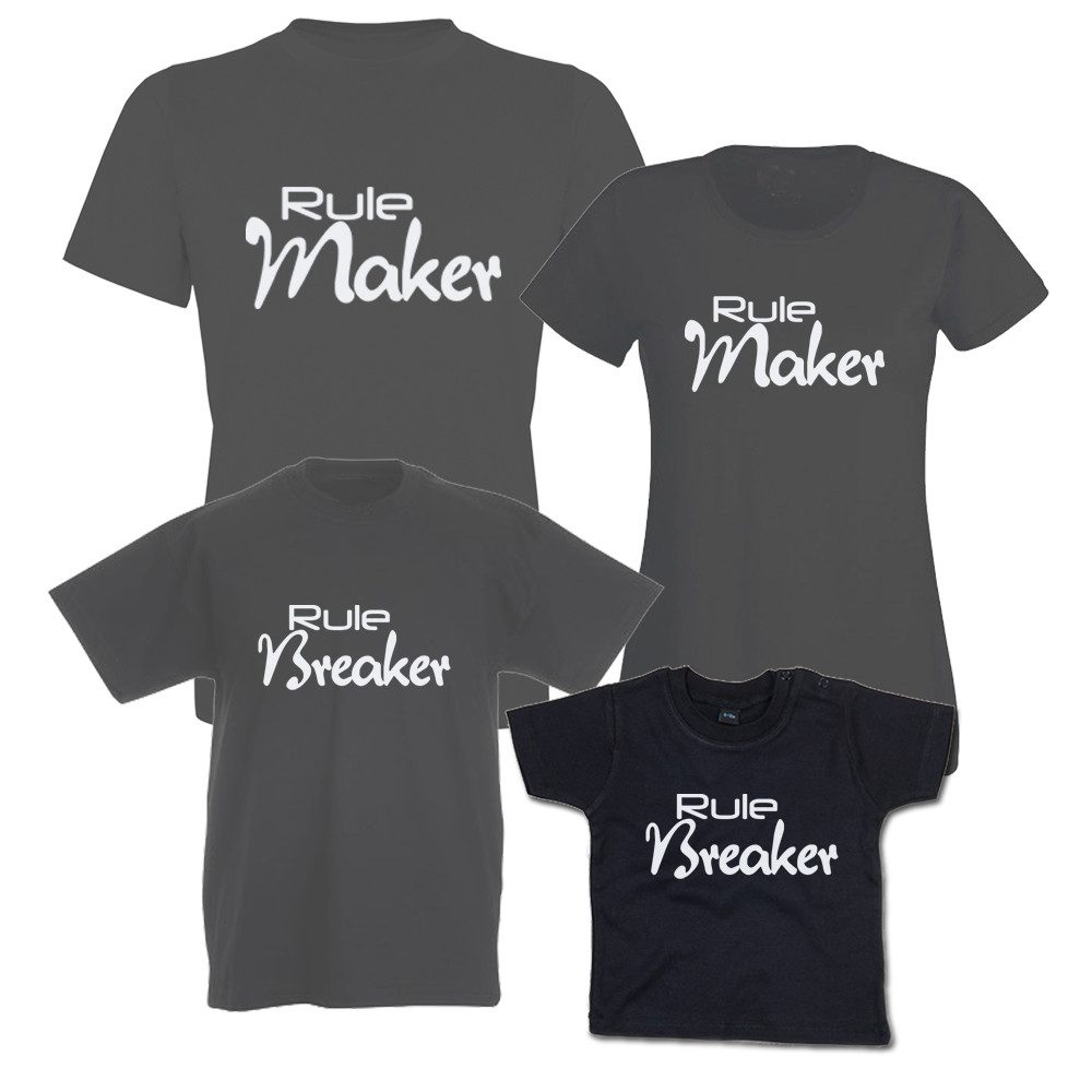 G-graphics T-Shirt Rule Maker & Rule Breaker (Familienset, Einzelteile zum selbst zusammenstellen) Kinder- & Erwachsenen-T-Shirt-Set mit Frontprint