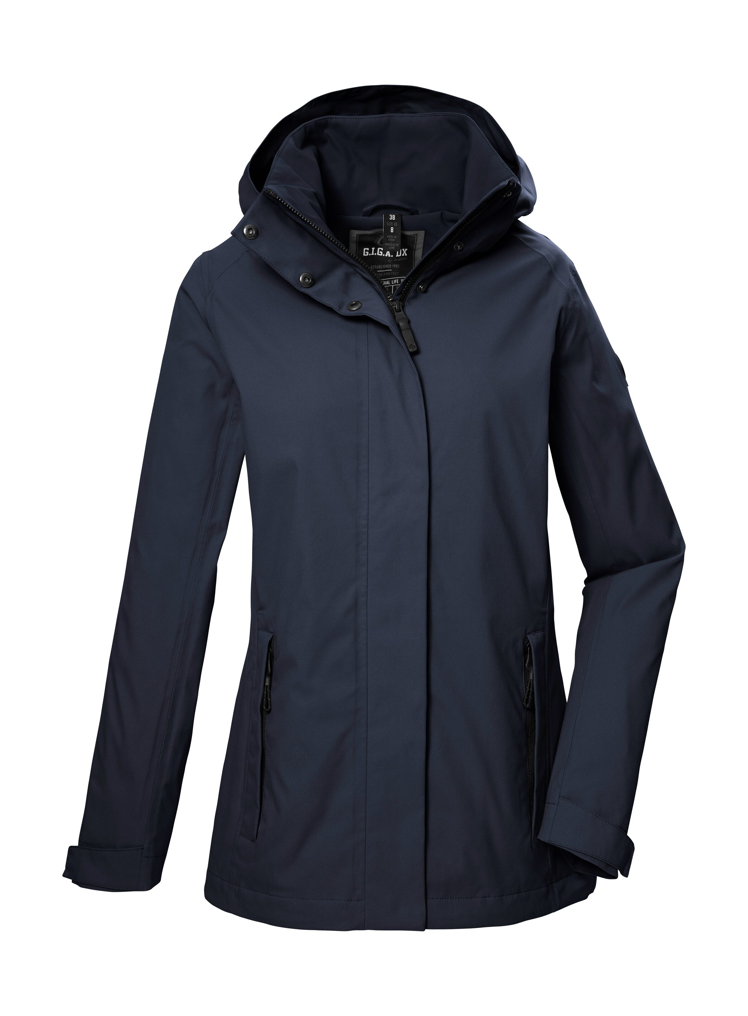 Besondere Merkmale | Wasser- und winddichte Damenjacke mit abnehmbarer Kapuze, atmungsaktiv |
