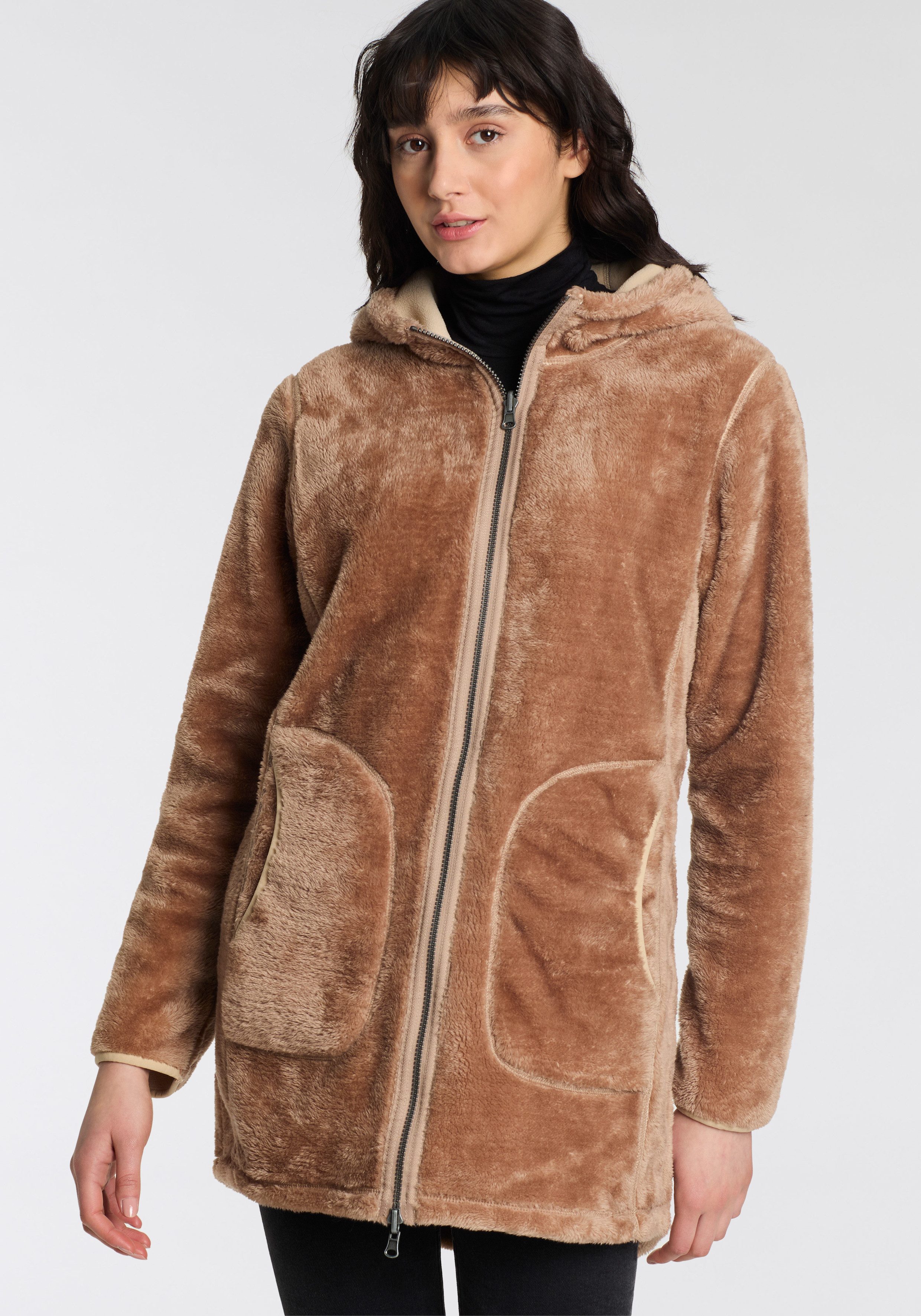 Das Material ist formbeständig und knittert kaum. Der Mantel ist atmungsaktiv, schnell trocknend und wärmend. Somit bleibt das angenehme Tragegefühl auch erhalten, wenn du ins Schwitzen kommst.