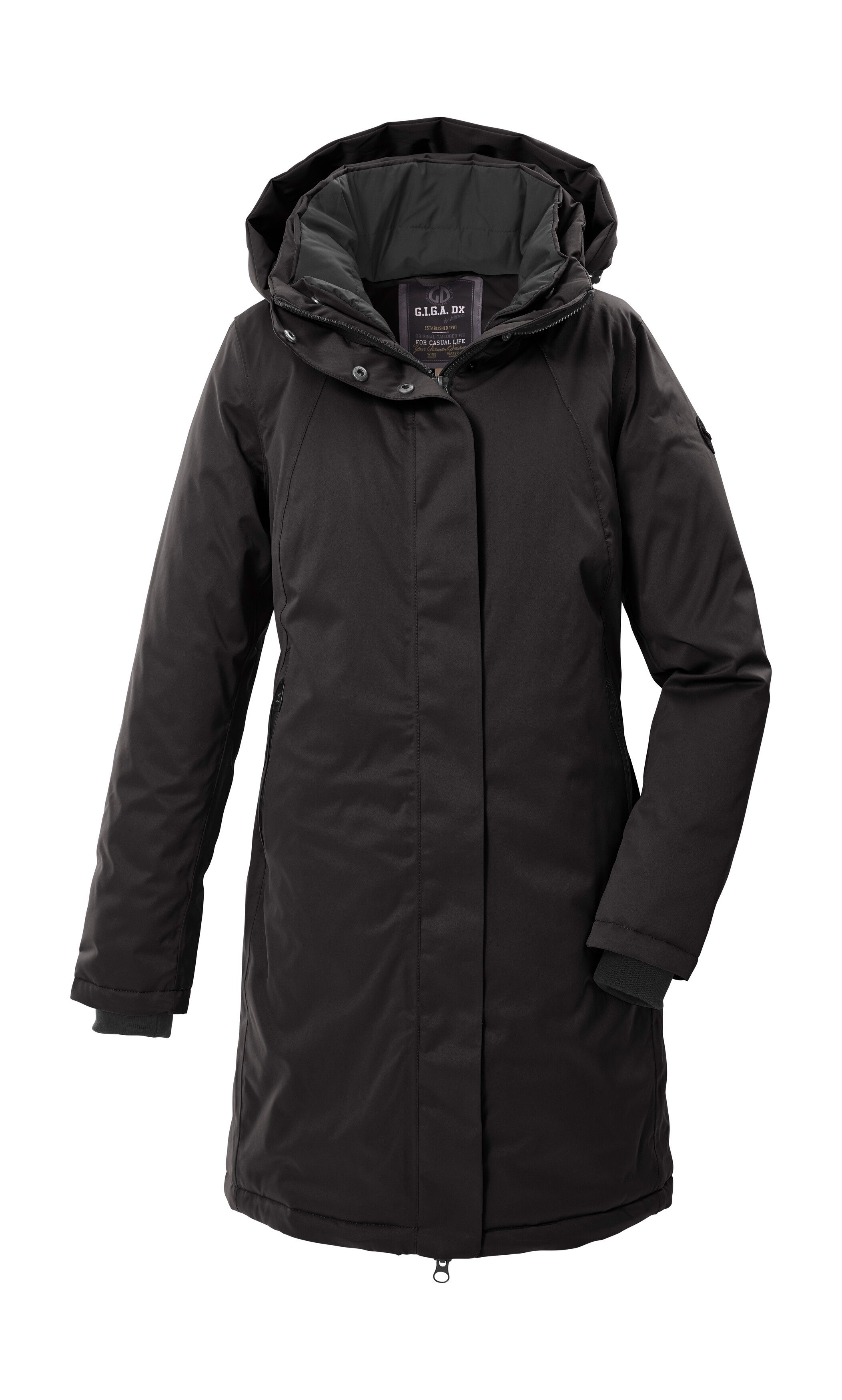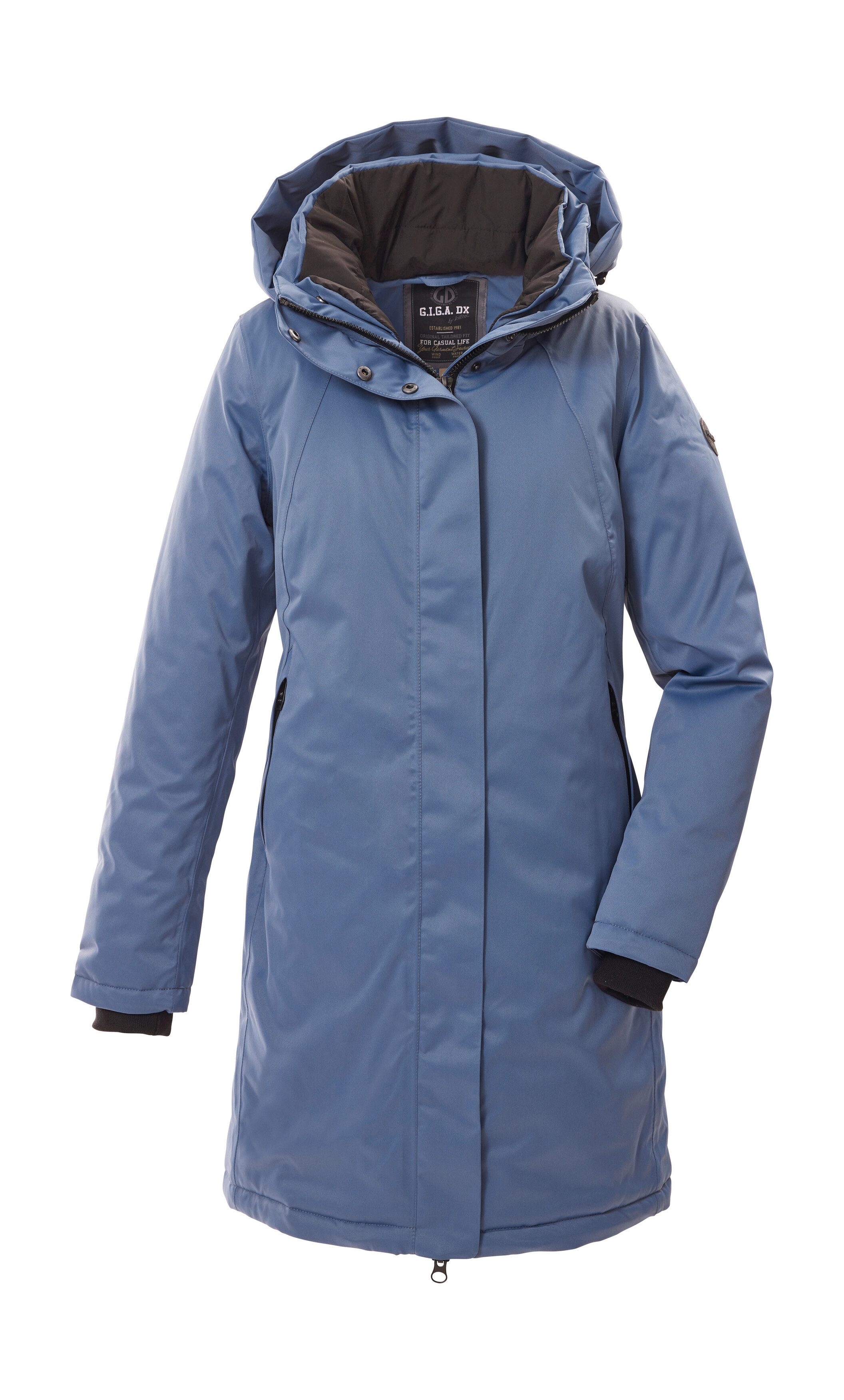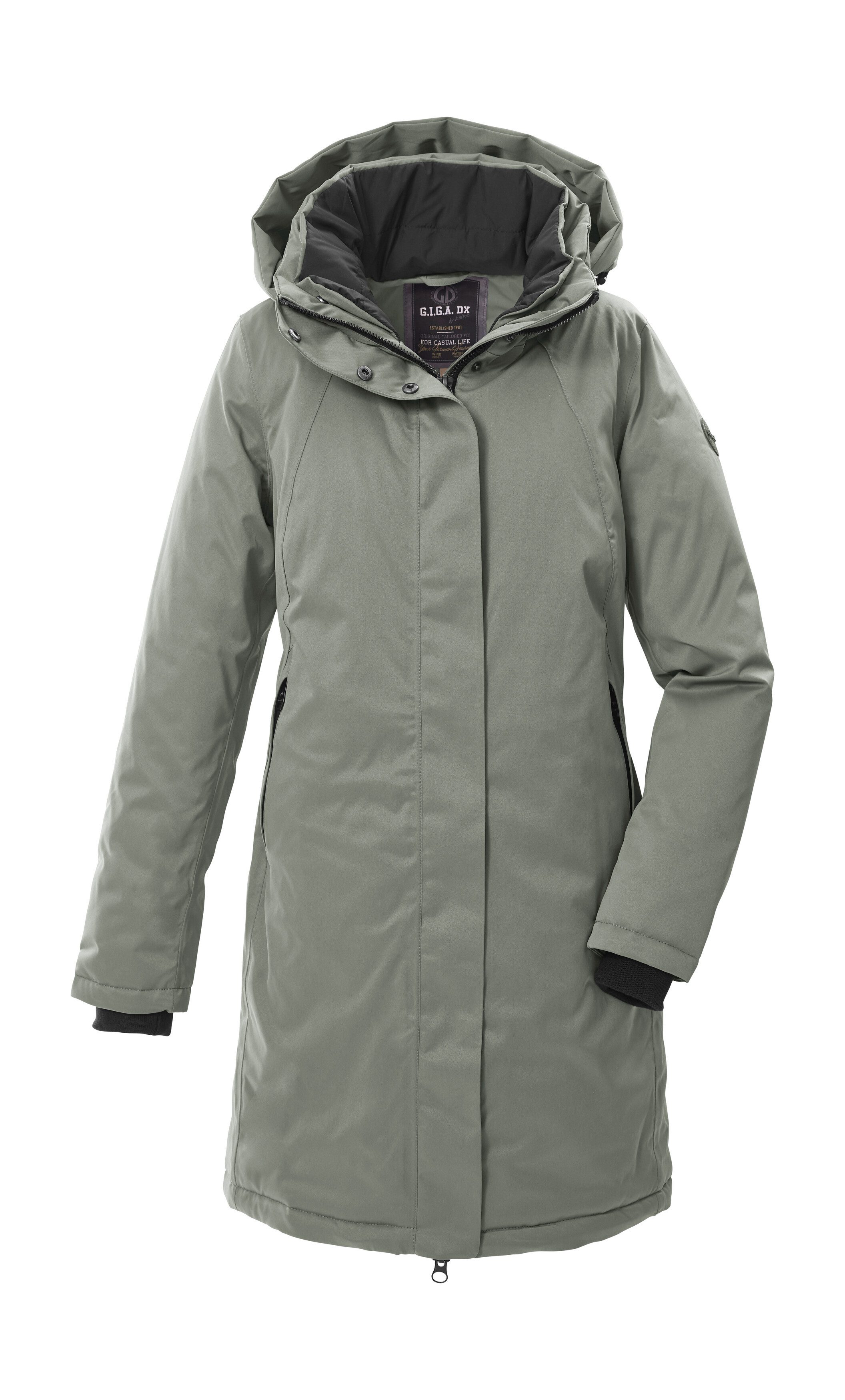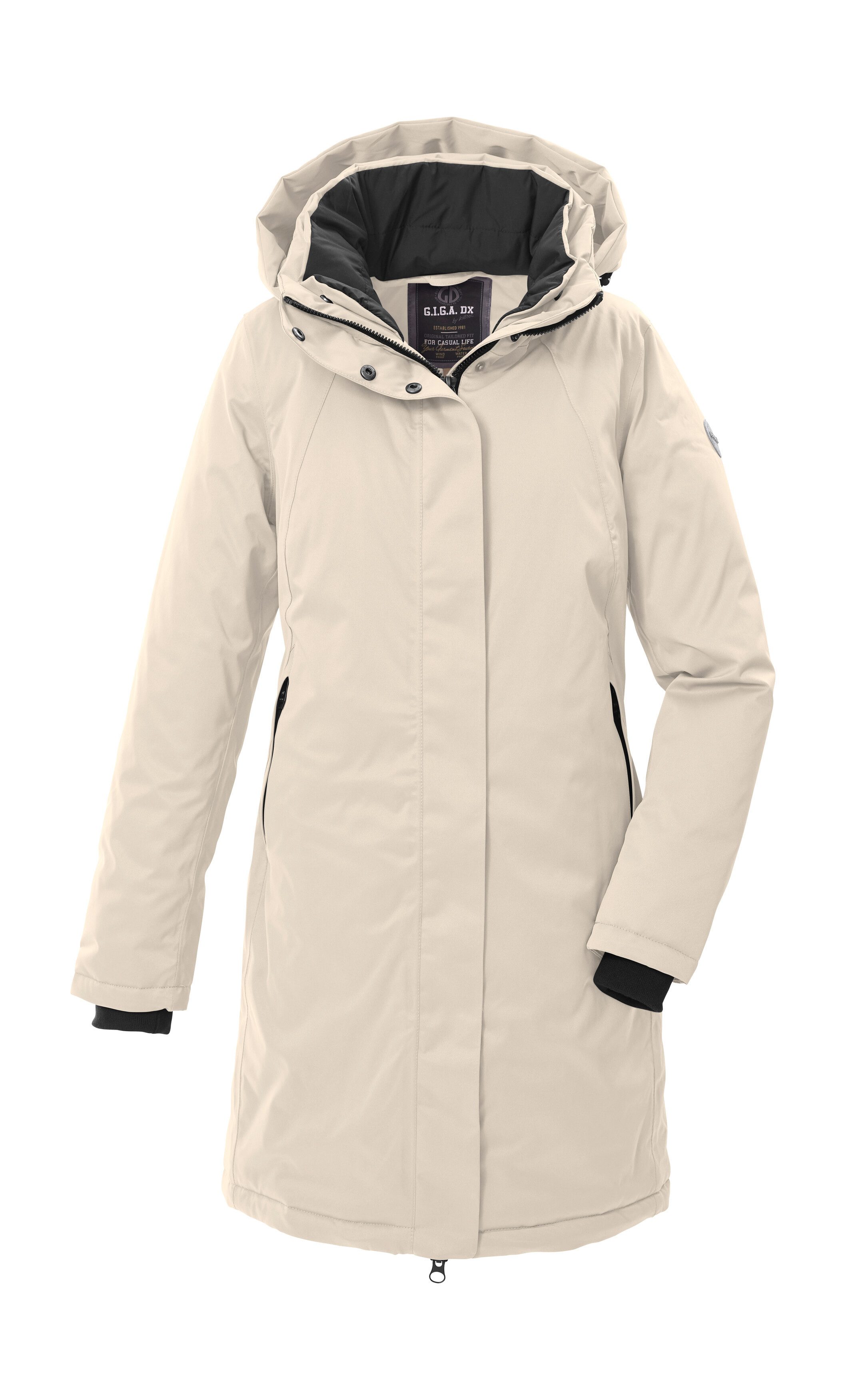 Der gefütterte Damen Parka von G.I.G.A. DX besticht durch seine Kombination aus Funktionalität und modernem Citystyle. Der Parka ist dank verschweißter Nähte und einer 10.000 mm Wassersäule wasserdicht . Gleichzeitig ist er mit einer Wasserdampfdurchlässigkeit von 3.000 g/m²/24 h atmungsaktiv. Die abzippbare Kapuze ist weitenregulierbar und schützt somit bei jedem Wetter. Weiche Ärmelbündchen verhindern das Eindringen von Wind und Kälte. Bewegungsfreiheit wird durch den verdeckten 2-Wege-Reißverschluss gewährleistet, der sich von oben und unten öffnen lässt. Die beiden Seitentaschen bieten genügend Stauraum und sind – genau wie die praktische Innentasche - durch Zipper verschließbar, sodass nichts verloren geht. Der funktionelle Parka wirkt durch seinen Schnitt sportlich modern und sorgt mit dem kontrastfarbenen, raffiniert gesteppten Innenfutter für einen extra Hingucker. Dieser Parka wurde PFAS-frei imprägniert. Unser Model trägt Размер 36 bei einer Körpergröße von 1,80 m.