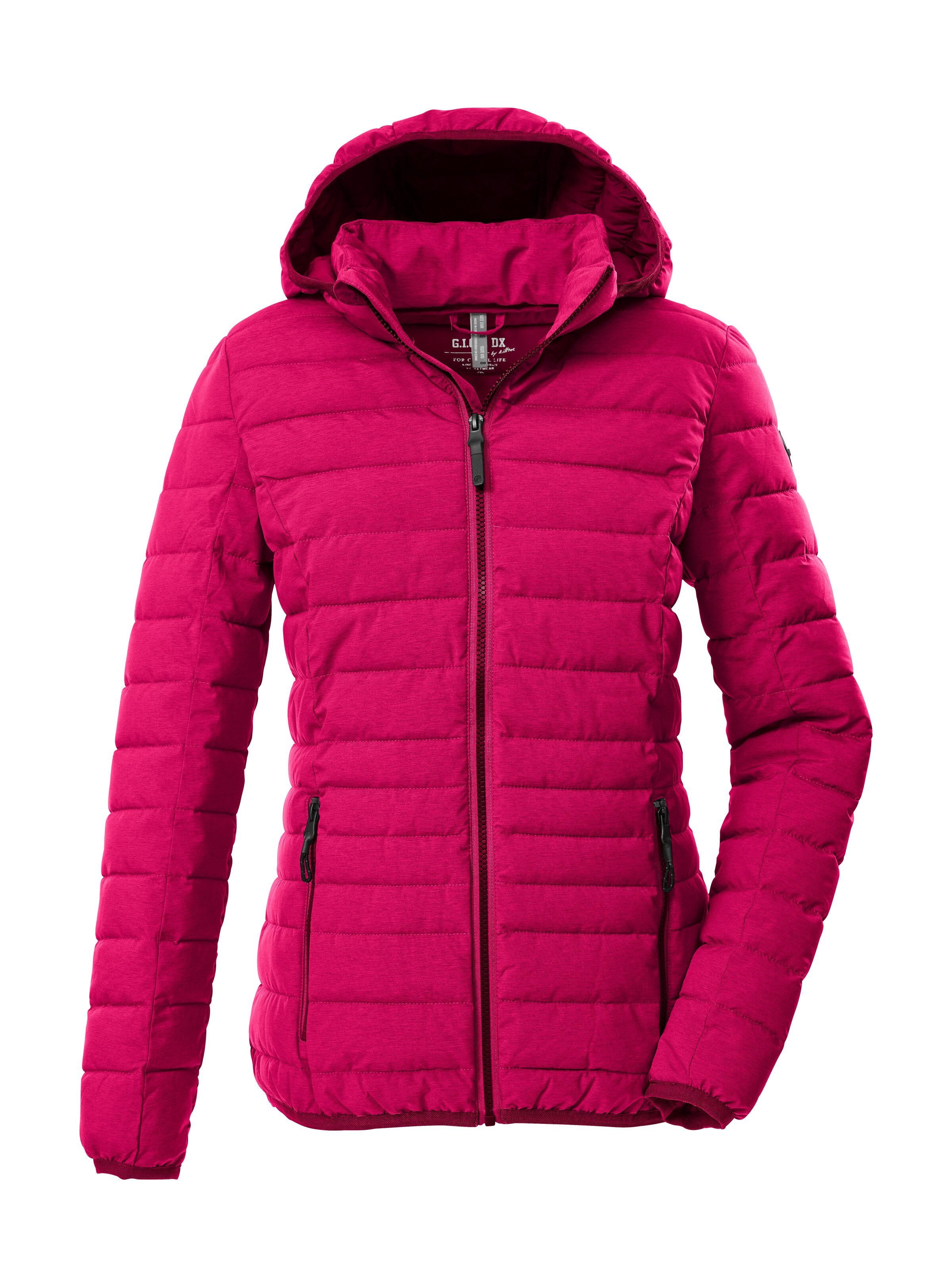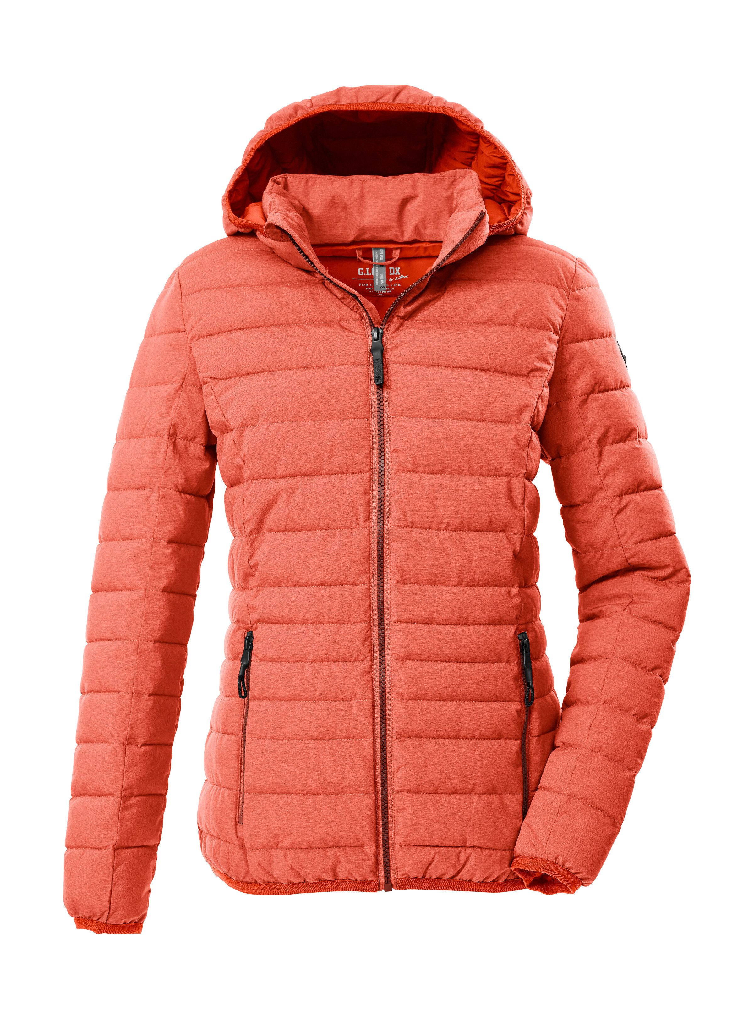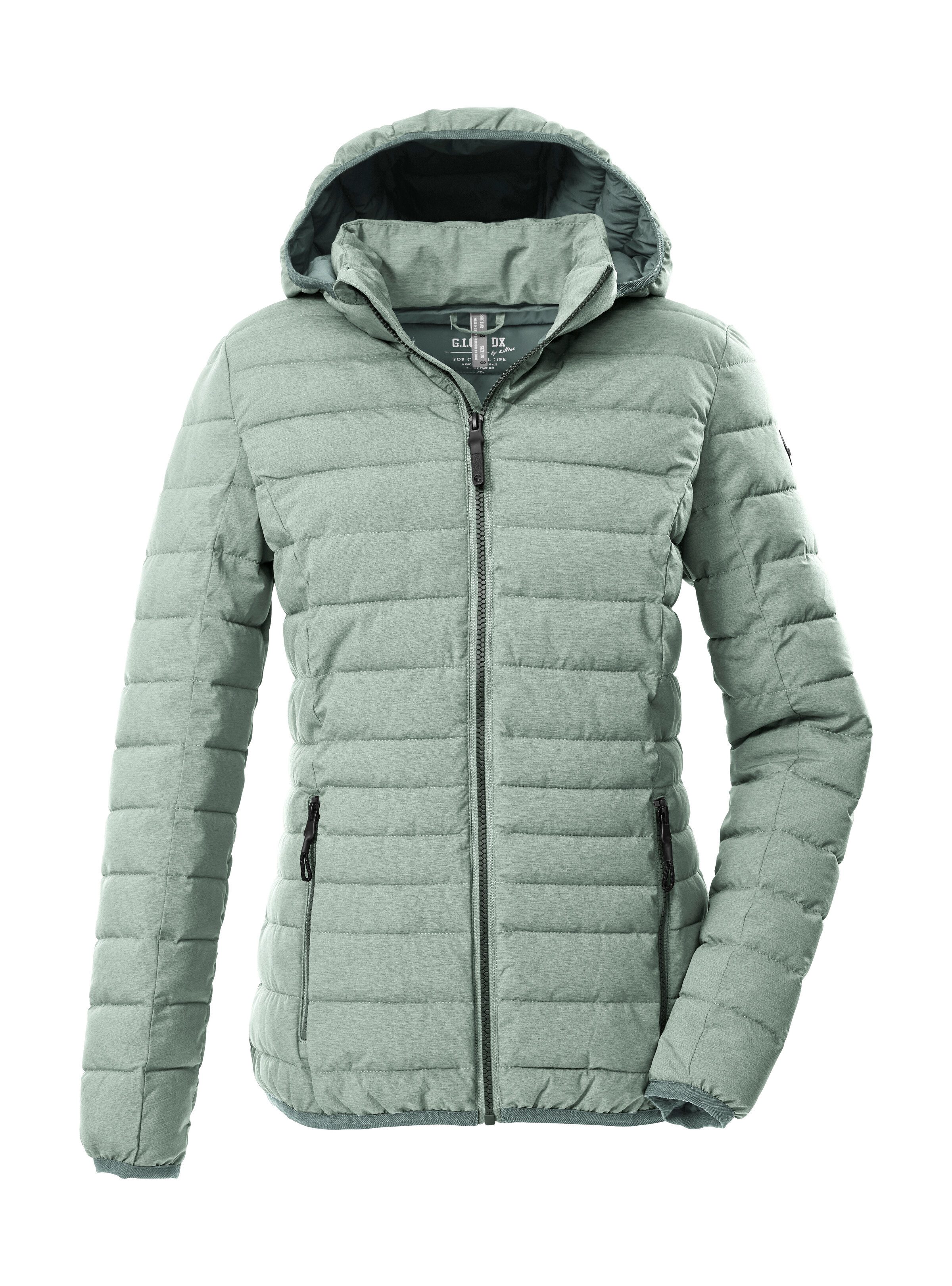 Die schmal geschnittene Damen Steppjacke in zeitlosem Citystyle von G.I.G.A. DX ist wind- und wasserabweisend mit einer 8.000 mm Wassersäule. Durch die leichte Füllung ist sie ideal für die Übergangszeit und den Herbst geeignet. Die Kapuze schützt bei Wind und Wetter. Der Saum und die Ärmelbündchen sind elastisch und sorgen so für einen guten Sitz. Die beiden Seitentaschen sind durch Zipper verschließbar, sodass nichts verloren geht. Der Frontreißverschluss ist mit einem praktischen Kinnschutz versehen. Diese Jacke wurde PFAS-frei imprägniert und teilweise aus recycelten Materialien hergestellt.