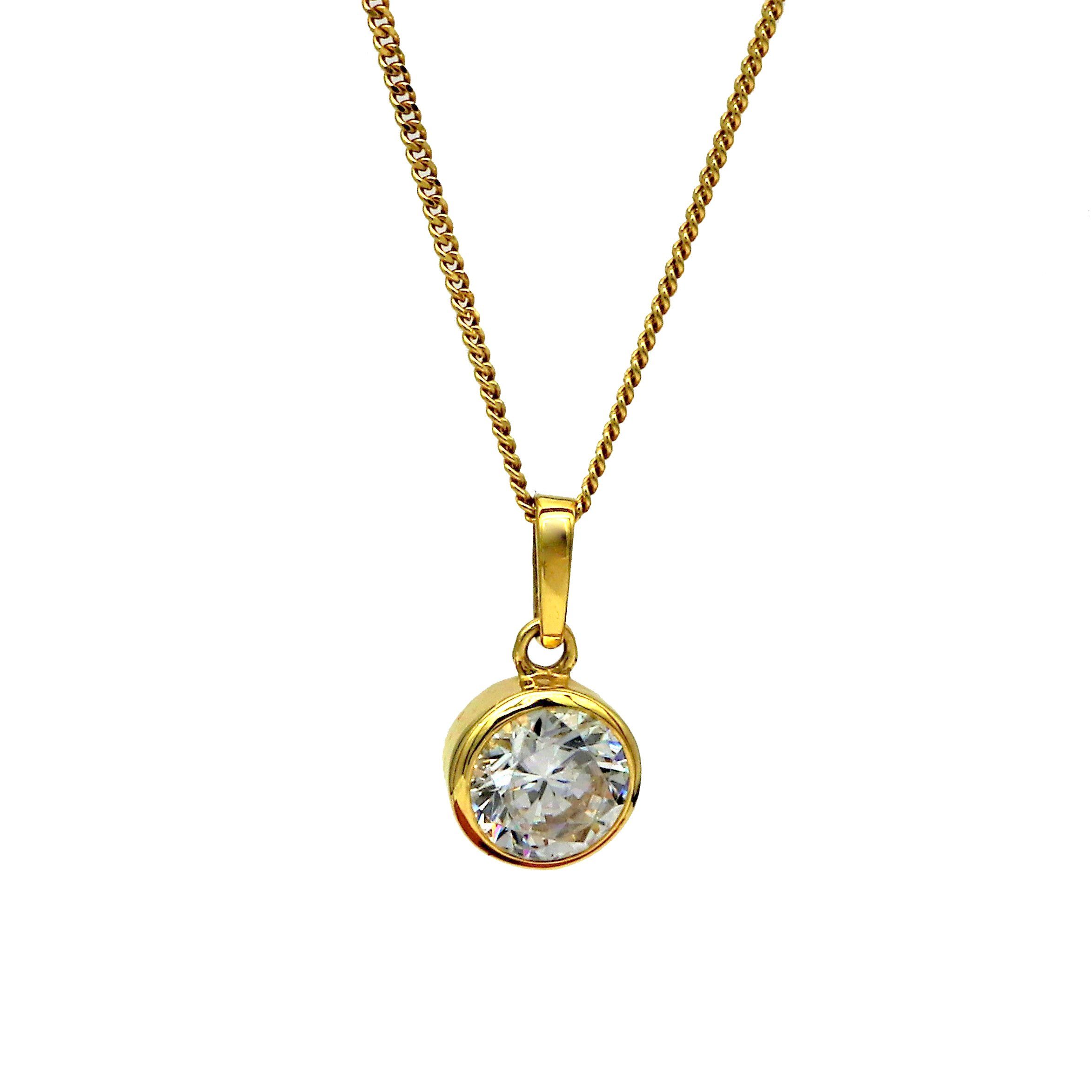 MODELL: Edler Goldanhänger mit Zirkonia und Öse Ring aus echtem 585/14Karat Gelbgold
