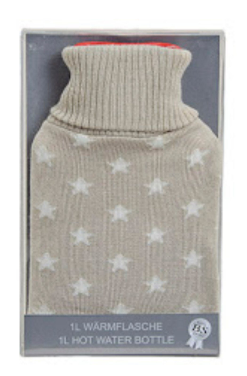 Besondere Merkmale | Waermflasche im Strickbezug Motiv Sterne CREME cremefarben idea |