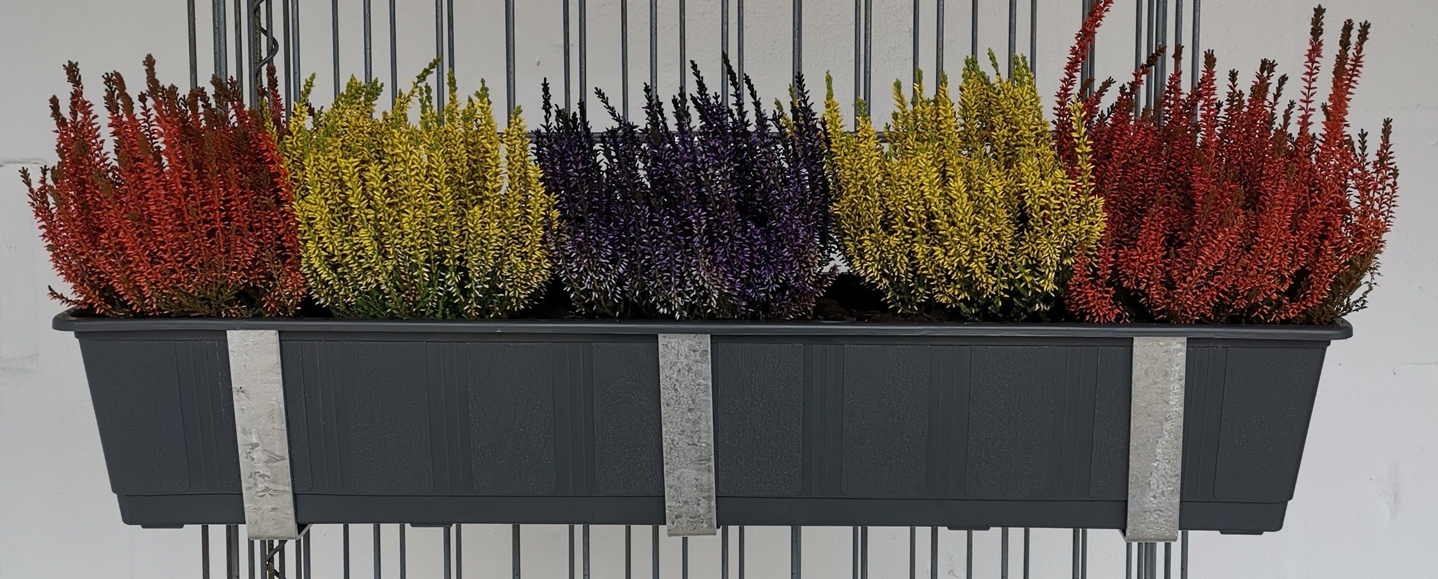 Dekorieren Sie Ihre Gabione jahreszeitlich passend! Mit den Halterungen für Blumenkästen befestigen Sie die Pflanzgefäße ganz einfach am Steinkorb. Die Gabione kann hierbei schon mit Steinen befüllt sein. Die Halterungen werden einfach in die Gitter eingehängt und der Blumenkasten hineingestellt. Sie passen perfekt für unsere Körbe mit den Maschenweiten 5 x 20 cm und sind sehr robust. Mit einer Materialstärke von 3,5 mm und einer Breite von 3 cm halten sie Ihre Bepflanzung sicher. Dank der hochwertigen Feuerverzinkung sind sie gut und dauerhaft gegen Korrosion geschützt, so dass Sie viele Sommer daran Freude haben werden. Auch das perfekt auf die Halterungen abgestimmte Pflanzgefäß ist im Lieferumfang enthalten. Der Blumenkasten hat eine Размер von ca. 80 x 17 x 14 cm. Er ist aus hochwertigem Kunststoff in anthrazit.