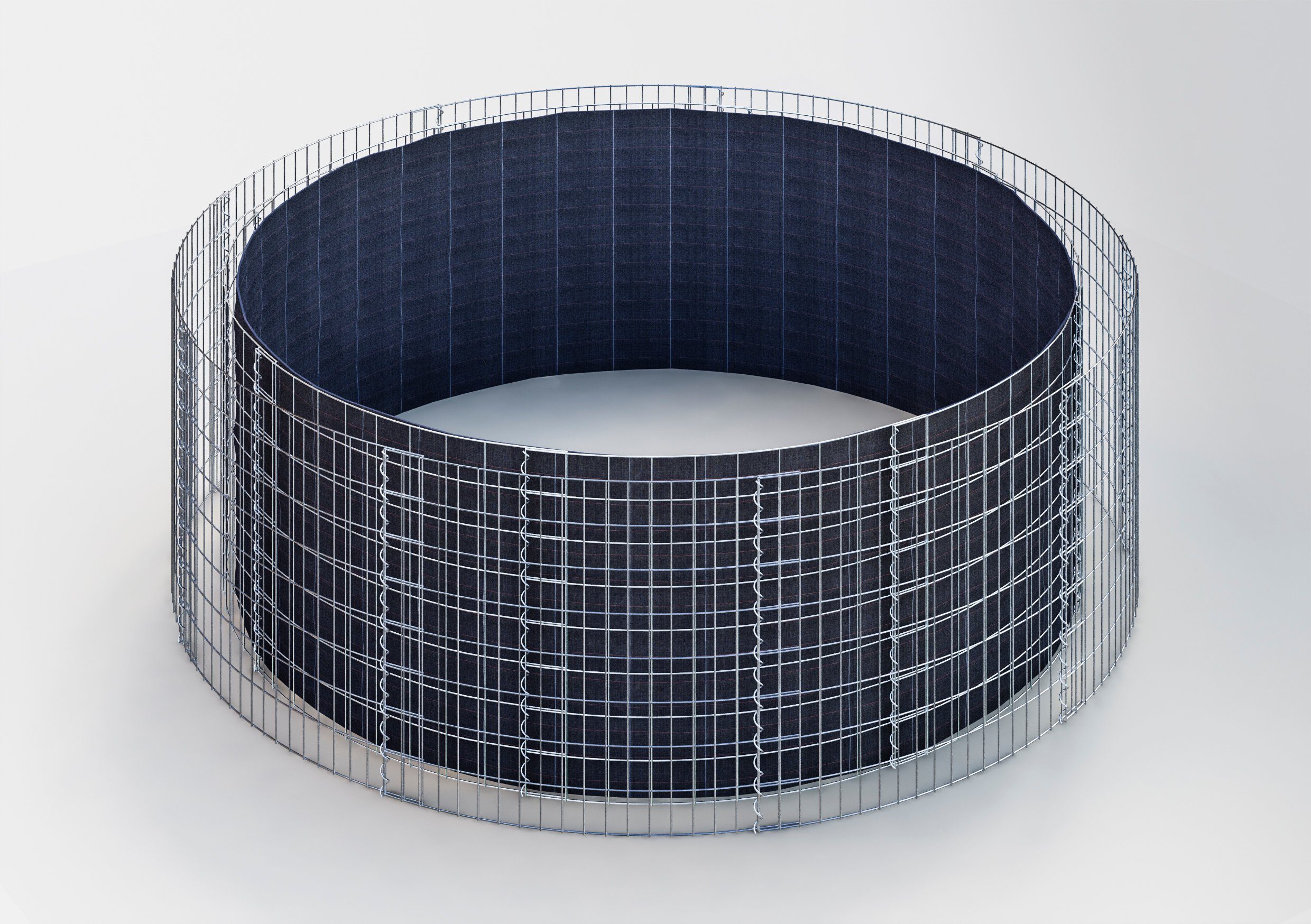 Unser rundes Gabionenhochbeet ist aus hochwertigen, verzinkten Stahldrähten gefertigt, die eine lange Lebensdauer und hohen Korrosionsschutz gewährleisten. Die Gabionengitter werden zwei Maschenweiten überlappt und mit einer Spirale verbunden, was die notwendige Biegung erzeugt und die runde Form sichert.