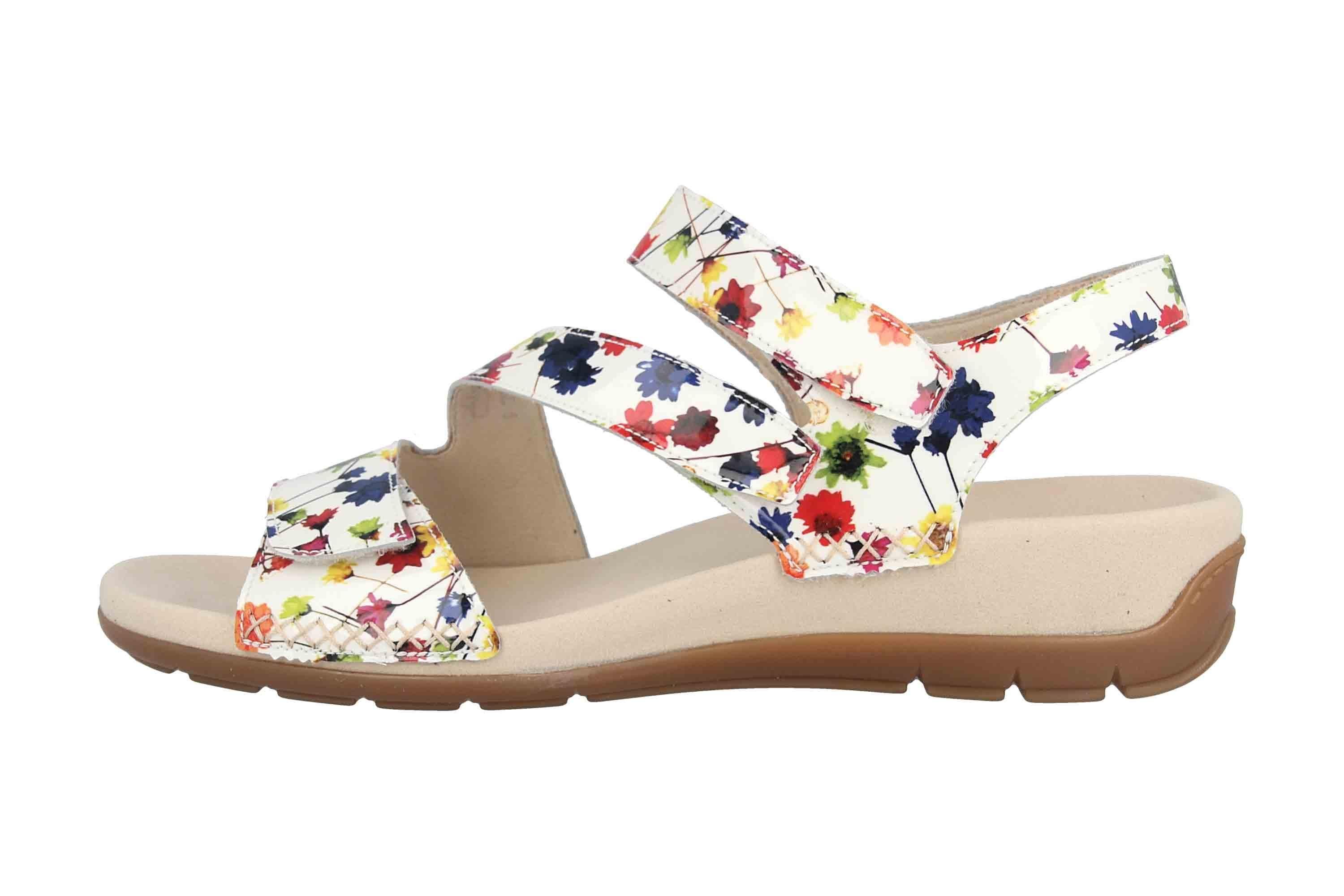 Bei diesem formschönen Schuh der Marke Gabor handelt es sich um ein Modell aus der Kategorie Sandaletten. Diese Damenschuhe in der Farbe Weiß überzeugen durch ein klares Design und unterstreichen die aktuelle Schuhmode. Große Schuhe von Gabor lassen sich perfekt mit dem urbanen Modegeist kombinieren und verleihen jedem modernen aber auch einem klassisch-sportivem Outfit den passenden Schliff. Das Außenmaterial bei diesem Modell wurde aus Leder hergestellt, als Innenmaterial wurde Micro verwendet. Bei diesen Schuhen kann als Weite Normale Weite (F-Weite) berücksichtigt werden. Die TR-Sohle sorgt jederzeit für einen guten Auftritt und ein mit einer Höhe von 2,0 cm sorgt für die harmonische Silhouette.