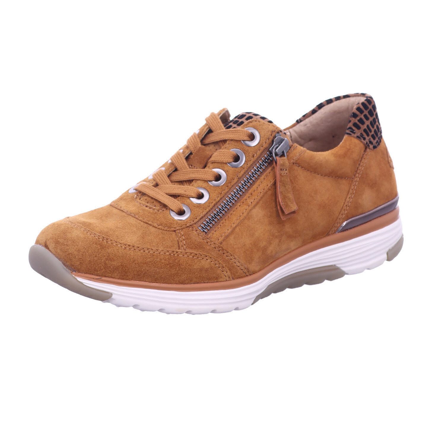 Schöner Damen Schnürhalbschuh von Gabor aus der RollingSoft-Serie aus einem feinen hochwertiger Lederkombination. Der Artikel verfügt über einen Schnürverschluss zzgl.praktischm Reißverschluss. Innen ist der Artikel mit chromfrei gegerbtem Leder und einem Wechselfußbett ausgestattet. - also auch perfekt für Einlagenträger geeignet. Der Schuh verfügt über die Weite G und bietet somit dem Fuß viel Platz und Komfort. Die EVA-Laufsohle besticht durch Leichtgigkeit und durch sehr gute Dämpfung und Abrollfähigkeit.