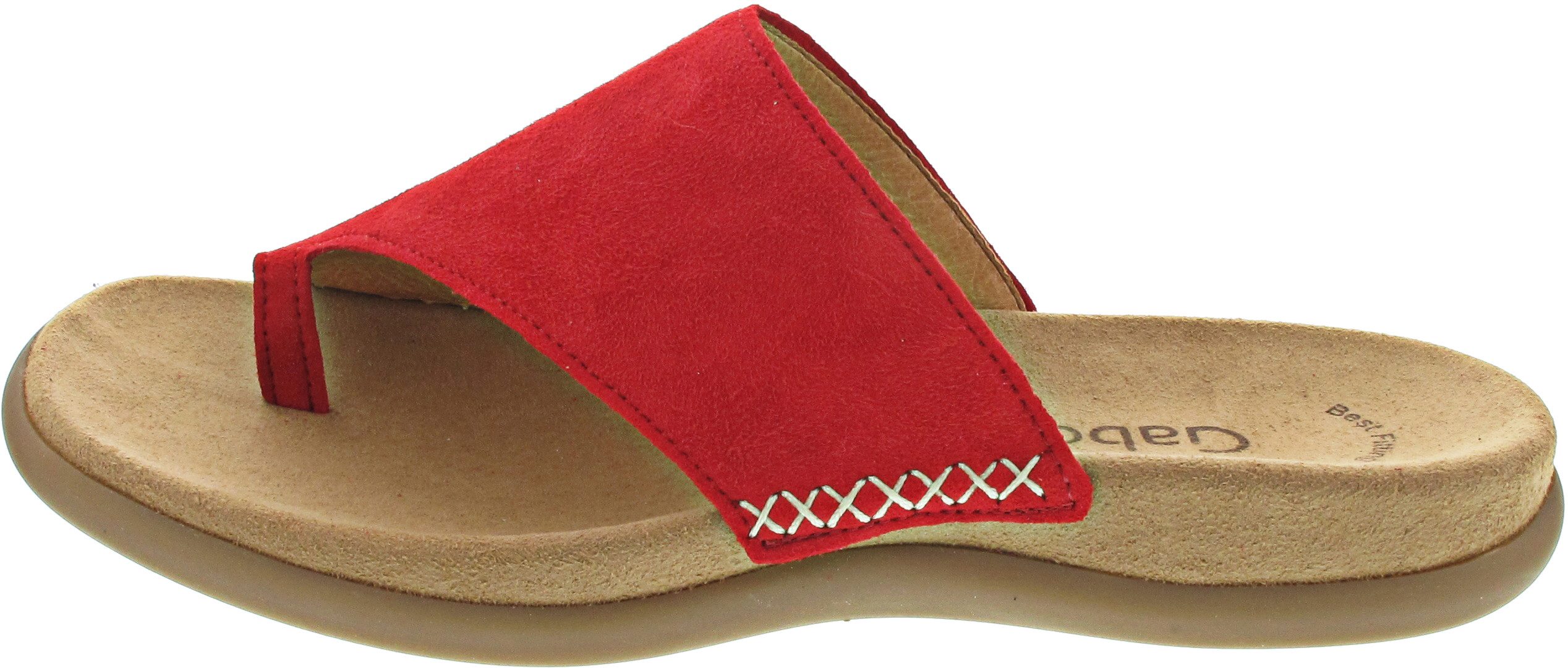 So gibst du deinem Outfit einen sommerlichen Look: Schau dir die Dianetten von Gabor mal genauer an! Kleiner Unterschied, große Wirkung: Damit der Fuß im Ballenbereich mehr Auftrittsfläche hat, wurde bei den Best Fitting-Modellen die Brandsohle verbreitert. In den Schuh kannst du schnell hineinschlüpfen und bist somit direkt startklar. Die leicht profilierte Gummi-Sohle der Dianetten sorgt für mehr Rutschfestigkeit auf unebenem Untergrund. Dank dem Keilabsatz wird eine angenehme Höhe erreicht, die sowohl Komfort als auch Stil bietet. Diese Dianetten in Weite F sind für schmale bis normale Füße geeignet.