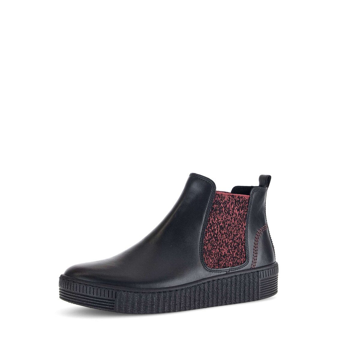 Besondere Merkmale | , Plateau, Stiefelette, Schlupfschuh mit dezenten Kontrastnähten |