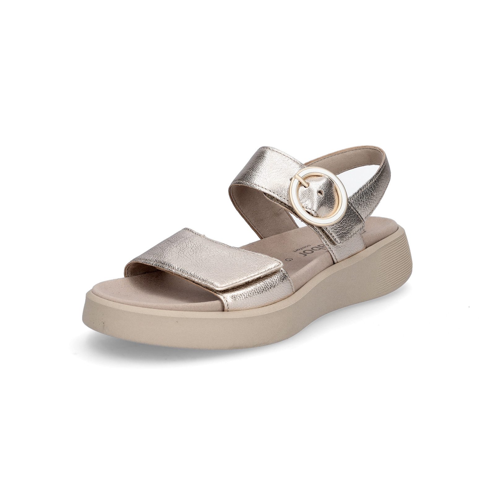 Mit den Keilsandaletten der Marke Gabor gibst du deinem Outfit einen sommerlichen Look. Mit den Klettverschlüssen kann der Schuh in der Weite reguliert sowie schnell an- und ausgezogen werden.