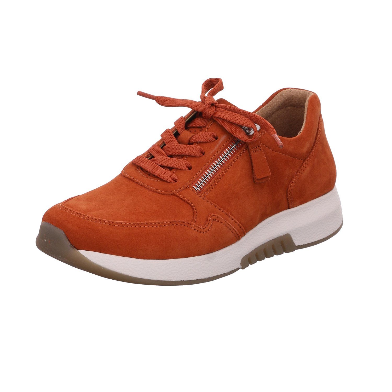 Schöner Damen Schnürhalbschuh von Gabor aus der RollingSoft-Serie aus einem feinem Velourleder. Der Artikel verfügt über einen Schnürverschluss zzgl. RV, der eine perfekte Anpassung an den Fuß ermöglicht. Innen ist der Artikel mit chromfrei gegerbtem Leder und einem Wechselfußbett ausgestattet. - also auch perfekt für Einlagenträger geeignet. Der Schuh verfügt über die Weite G und bietet somit dem Fuß viel Platz und Komfort. Die EVA-Laufsohle besticht durch Leichtgigkeit und durch sehr gute Dämpfung und Abrollfähigkeit.