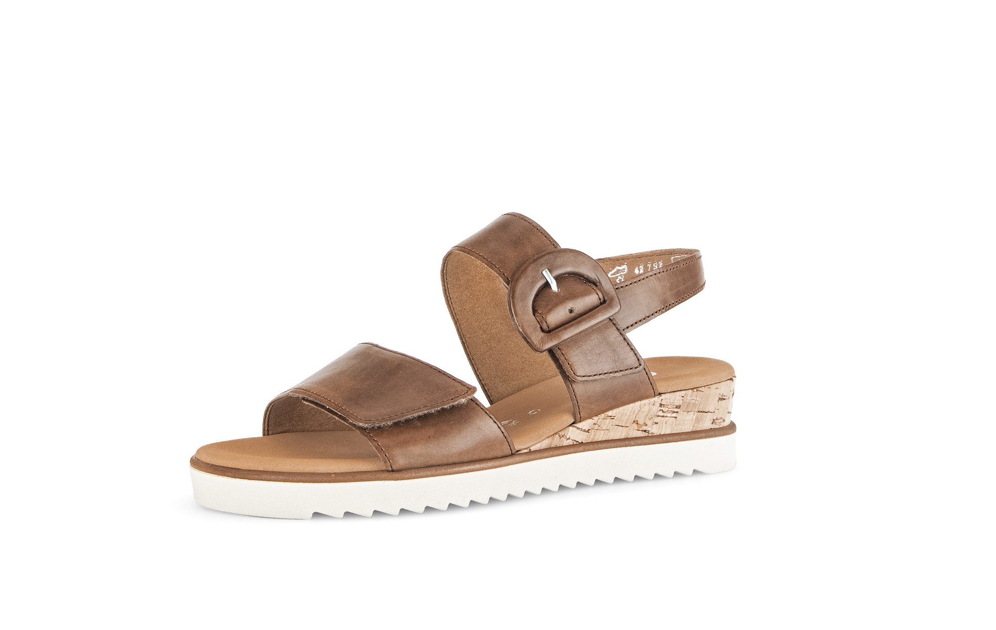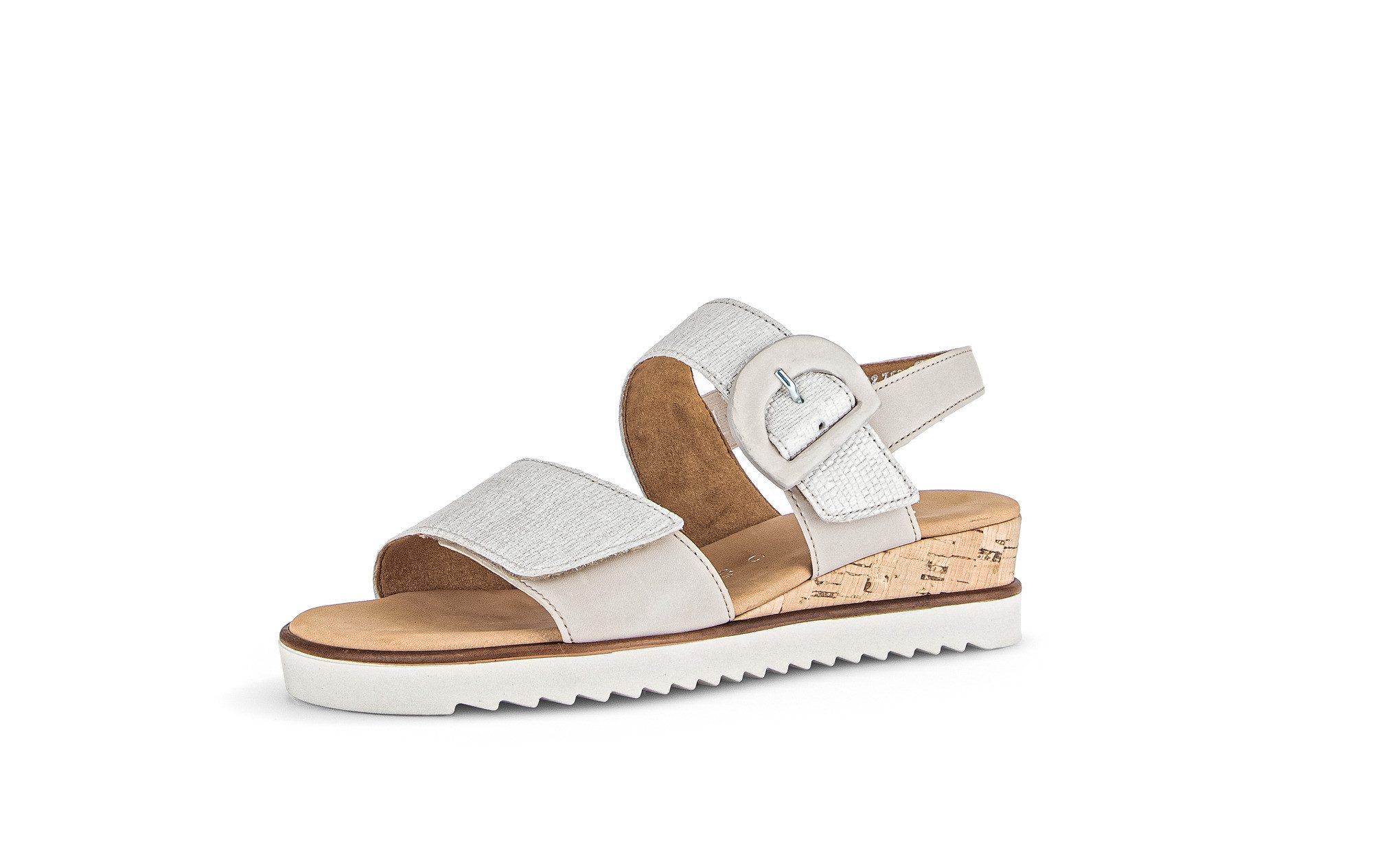 Damit machst du dein Urlaubs-Outfit komplett: Schau dir die Keilsandaletten von Gabor mal genauer an! Mit den Klettverschlüssen lässt sich der Schuh schnell an- und ausziehen sowie in der Weite individuell anpassen.