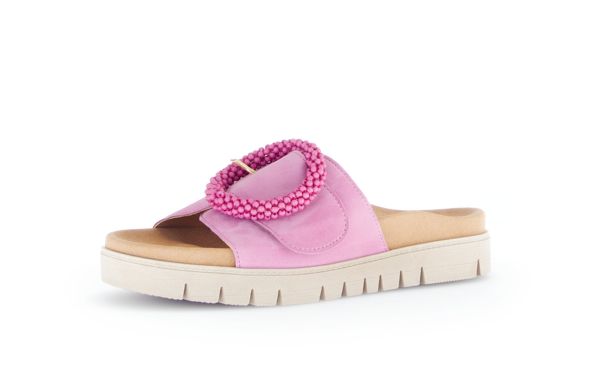 Besondere Merkmale | , Plateau, Sommerschuh, Schlappen mit Zierperlen an der Zierschnalle |