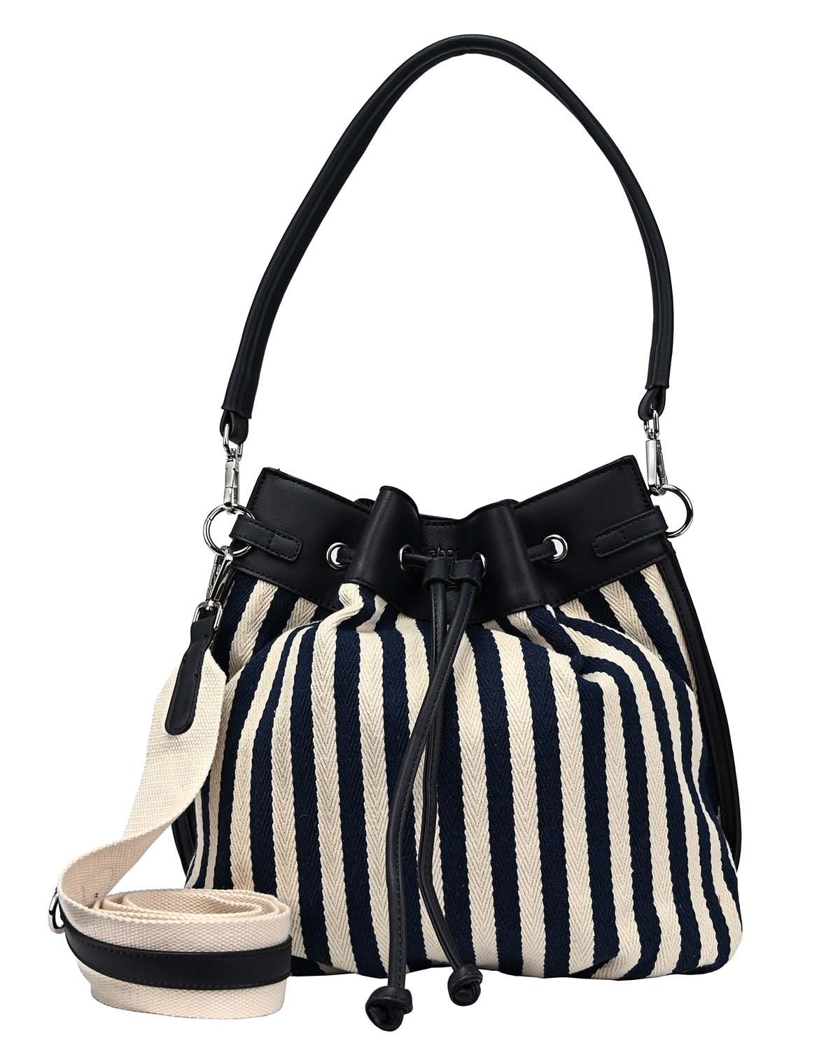 abor Ahoi – Frischer Style mit maritimem Flair! Segel setzen und los geht’s mit dem Gabor Ahoi – einer lässigen Tasche, die mit klassischen Blockstreifen und einem edlen ledrigen Besatz in tiefem Navy-Blau punktet. Die silberfarbene Hardware setzt dabei einen modernen Akzent und verleiht dem Design eine coole, maritime Note. Praktisch und stylisch zugleich: Kordelzug mit Magnetverschluss für sicheres Verschließen Reißverschluss-Rückfach für schnellen Zugriff Innenausstattung mit Reißverschlussfach, Smartphone-Fach und Steckfach – ideal für Ordnung unterwegs Abnehmbare Trageriemen (Schultergurt & Gitarrengurt) für flexible Tragemöglichkeiten Hochwertige Details: Obermaterial aus Baumwolle mit PU-Beschichtung – robust und pflegeleicht Gabor-Logo geprägt – ein dezentes Markenzeichen Leuchtend rotes PES-Futter – für einen frischen Kontrast Tierfreundlich: ♻ 100 % lederfrei – ohne Kompromisse bei Qualität und Style