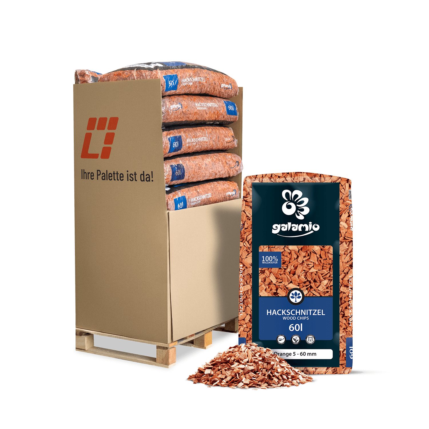 Unsere orangefarbenen Holzhackschnitzel der Marke GALAMIO® mit der Körnung 5-60 mm bringen starke Kontraste in Ihren Garten und setzen Beete sowie Wege perfekt in Szene. Mit den farbigen Holzhackschnitzeln gestalten Sie Ihre Außenflächen ganz individuell und lebendig. Hergestellt aus reinem Kiefernholz und gefärbt mit natürlichen Eisenoxiden sind sie unbedenklich für Umwelt und Boden – bringen Sie Farbe in den Garten, ohne der Natur zu schaden. Nach dem Auslegen bieten die Hackschnitzel bis zu drei Jahre lang ansprechende Optik und funktionalen Schutz für Ihre Gartenflächen. Sie helfen, den Boden vor starken Temperaturschwankungen zu schützen und reduzieren das Unkrautwachstum, wodurch sich der Pflegeaufwand verringert. Durch die Feuchtigkeitsspeicherung im Boden wird weniger Gießen erforderlich, und die Bodenstruktur bleibt geschützt. Besonders in warmen Monaten sorgen die Hackschnitzel dafür, dass die Pflanzen besser mit Wasser versorgt bleiben. Für eine kreative Gartengestaltung lassen sich die Holzhackschnitzel gut mit anderen Farben kombinieren und eignen sich ideal für Pflanztöpfe oder zwischen Sträuchern – ein echter Hingucker in Ihrem Garten! Setzen Sie Kontraste oder kreieren Sie Muster und Formen nach Ihren persönlichen Vorstellungen. Bestellen Sie die GALAMIO® Holzhackschnitzel ganz bequem und erhalten Sie die Ware direkt nach Hause geliefert. Die Lieferung erfolgt in praktischen 60-Liter-Säcken, die ordentlich auf einer Palette gestapelt sind und per Spedition zuverlässig ankommen. Je nach Bedarf können Sie zwischen 13, 26 oder 39 Säcken pro Palette wählen.