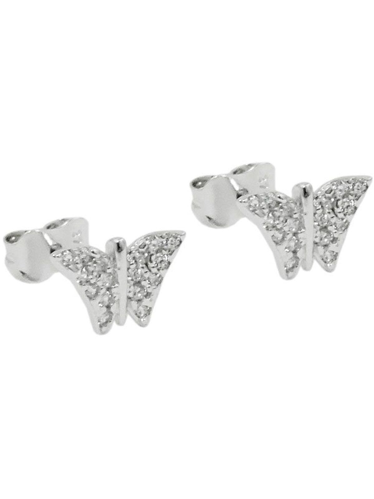 Wunderschöne Schmetterlings-Ohrringe mit Zirkonias aus 375er Weißgold (9 Karat), gearbeitet in hochwertiger Juwelierqualität. Die silberglänzenden, 6x9mm großen Glitzer-Ohrringe sind mit vielen kleinen weißen funkelnden Zirkonias verziert. Ein universell tragbarer Schmuck, nicht nur als Kinderschmuck für kleine Mädchen! Das Motiv Schmetterling steht für Neubeginn und Wiedergeburt - aus einer Raupe, die am Boden kriecht, entsteht nach der Verpuppung ein wunderschöner Schmetterling, der mit scheinbar verspielter Leichtigkeit überall hinfliegen kann. Ein Sinnbild zum Träumen! Abmessung: 6x9mm Gewicht: 1,1g Legierung: 375/000 Gold, 9 Karat Preis per 1 Paar