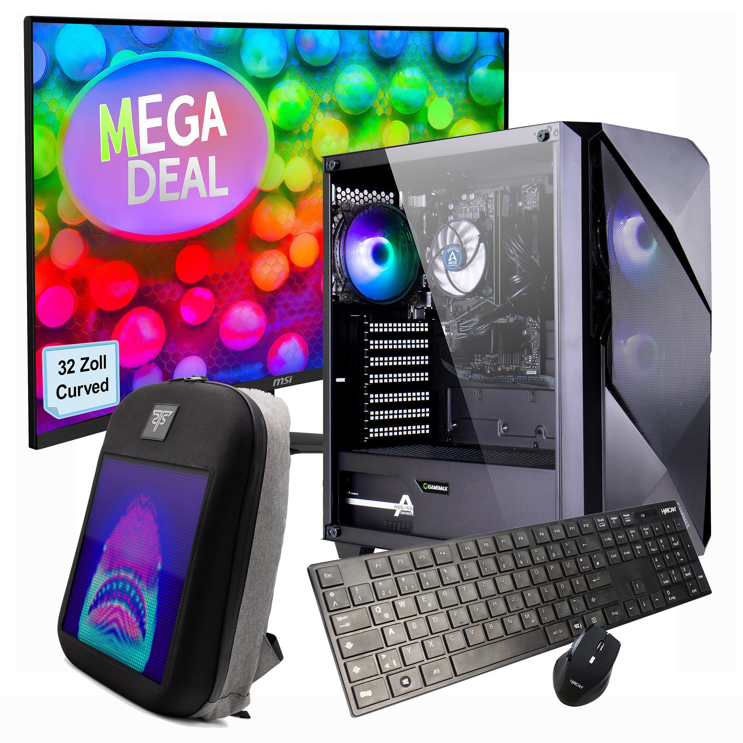 Komplett-Paket mit Zubehör Das Set enthält nicht nur den leistungsstarken PC, sondern auch einen MSI MAG 32C6 Monitor, eine Tastatur, Maus und Rucksack - ideal für den direkten Start nach dem Auspacken.