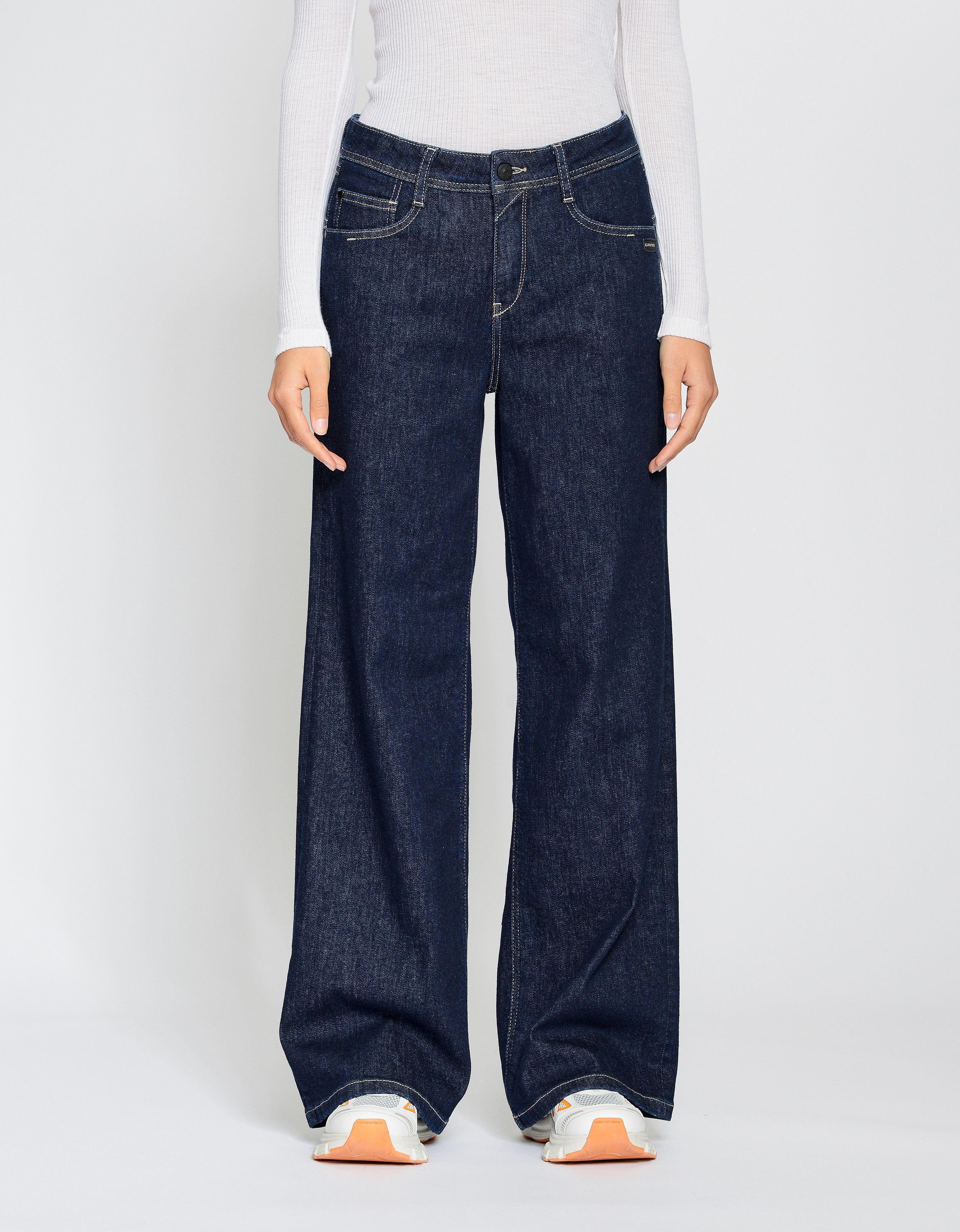 Bei allen deinen Freizeitaktivitäten machst du mit der weiten Jeans »94AMELIE WIDE« von GANG eine besonders gute Figur: Gib dem Look eine feminine Note, indem du die Jeans mit einem schulterfreien oder fließendem Oberteil kombinierst. Komplett wird der gekonnte Stilmix mit Pumps.