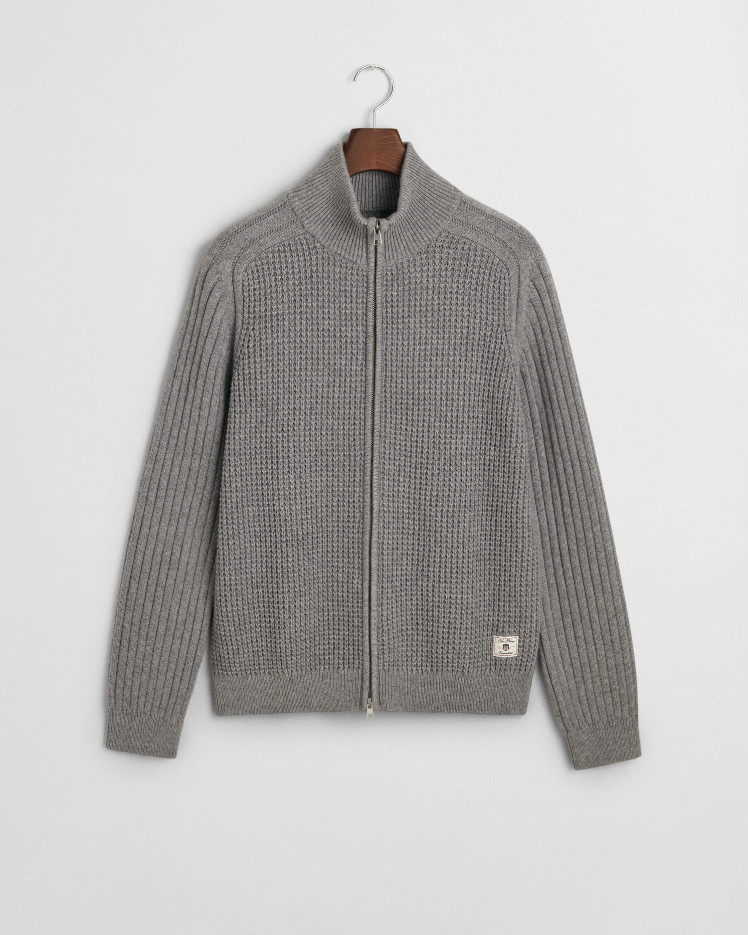 Die GANT Herren Strickjacke mit Reißverschluss besticht durch ihre strukturierte Baumwoll-Wollmischung, die sie zu einem echten Hingucker macht. Langärmel, formgestrickte Details und Rippstrickbündchen an Saum und Ärmelenden sorgen für einen stilvollen Auftritt. Dank des Regular Fits passt sich die Jacke perfekt Deinem Körper an und bietet gleichzeitig genügend Bewegungsfreiheit. Ob beim gemütlichen Lesen auf dem Sofa oder einem entspannten Abend mit Freunden, diese Strickjacke ist der ideale Begleiter für Indoor-Aktivitäten.Ein gerippter Stehkragen verleiht der Jacke nicht nur eine elegante Note, sondern schützt auch vor kühler Luft. Der durchgehende Frontreißverschluss ermöglicht es Dir, die Jacke schnell und unkompliziert an- und auszuziehen. Die hochwertige Materialzusammensetzung aus 45% Baumwolle, 35% Wolle und 20% Polyamid sorgt für ein angenehmes Tragegefühl und hält Dich warm. Das strukturierte Design gibt der Jacke das gewisse Etwas und macht sie zu einem vielseitigen Kleidungsstück, das sich leicht kombinieren lässt.Pflegeleicht und praktisch: Mit ähnlichen Farben waschen und feucht in Form ziehen, um die Langlebigkeit der Strickjacke zu gewährleisten. Die Maschine im Wollprogramm laufen lassen und Wollwaschmittel verwenden, um die Qualität der Materialien zu erhalten. Dank der einfachen Pflegehinweise bleibt die Jacke lange in einem Top-Zustand und Du kannst sie immer wieder tragen, ohne Dir Sorgen um die Reinigung zu machen. Das Waschen und Bügeln auf links schützt die Textur und das Aussehen des strukturierten Designs.Ideal für Indoor-Anlässe, bietet diese Strickjacke die perfekte Kombination aus Stil und Komfort. Die Mischung aus Baumwolle und Wolle sorgt nicht nur für Wärme, sondern auch für eine angenehme Haptik. Der Regular Fit und die durchdachten Details wie der gerippte Kragen und die Rippstrickbündchen machen diese Jacke zu einem Must-Have in jeder Garderobe. Für Liebhaber von Qualität und Design bietet diese Strickjacke eine hervorragende Wahl, um Deine Strickgarderobe zu ergänzen und gleichzeitig modisch up-to-date zu bleiben. Strukturierte Baumwoll-Wollmischung Langärmel und Regular Fit Gerippter Stehkragen und Frontreißverschluss Pflegeleicht: Maschinenwäsche im Wollprogramm Ideal für Indoor-Aktivitäten