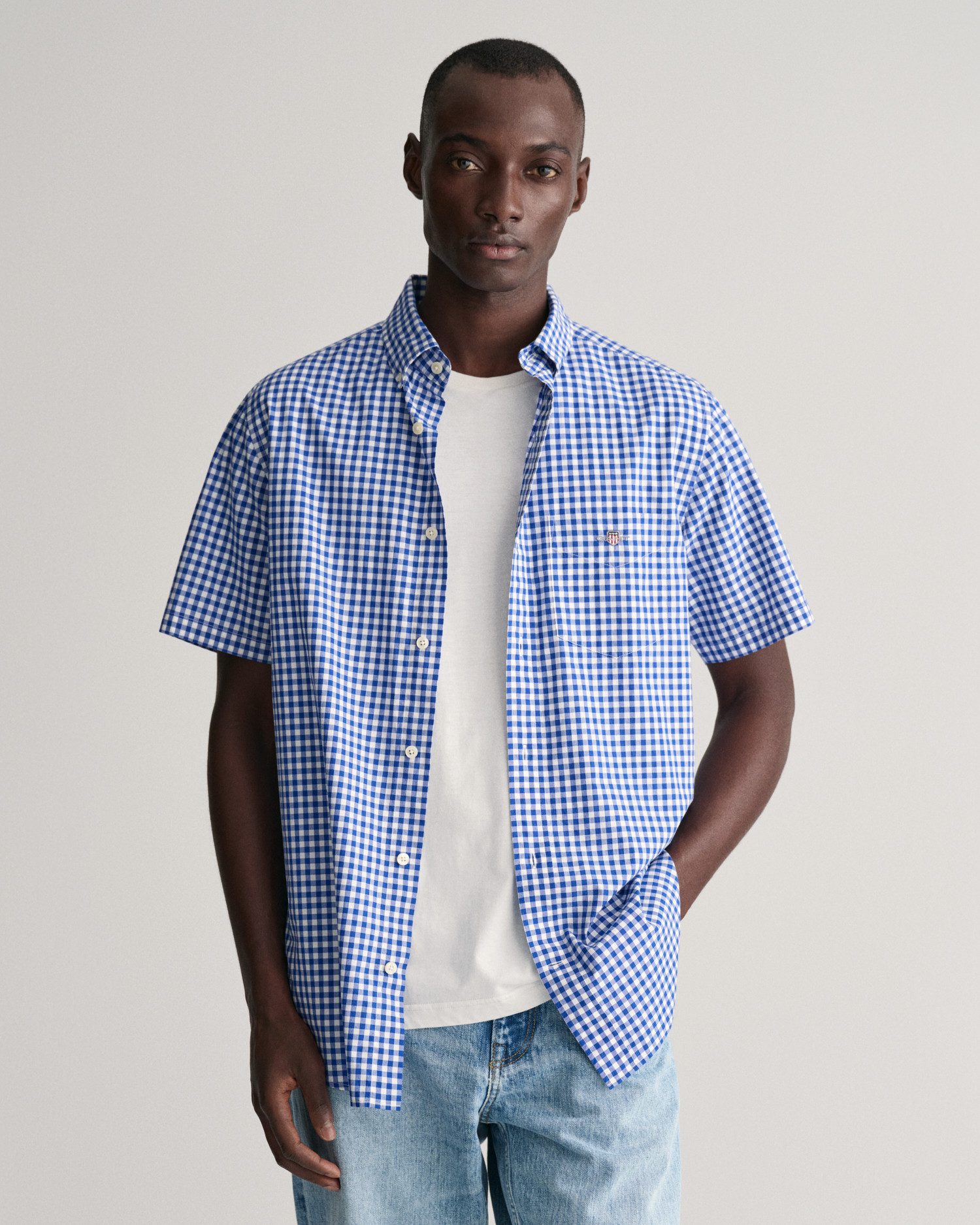 Schau dir das Kurzarmhemd »Regular Fit Gingham Popeline Hemd strapazierfähig pflegeleicht kariert« von Gant mal genauer an. Die Logostickerei macht das Hemd individuell und peppig. Dieses Hemd hat einen hoch geschlossenen Ausschnitt und ist hüftbedeckend sowie basic geschnitten, wodurch dein Oberkörper locker umspielt wird. Das Oberteil hat eine Raffung, die den Schnitt insgesamt auflockert.