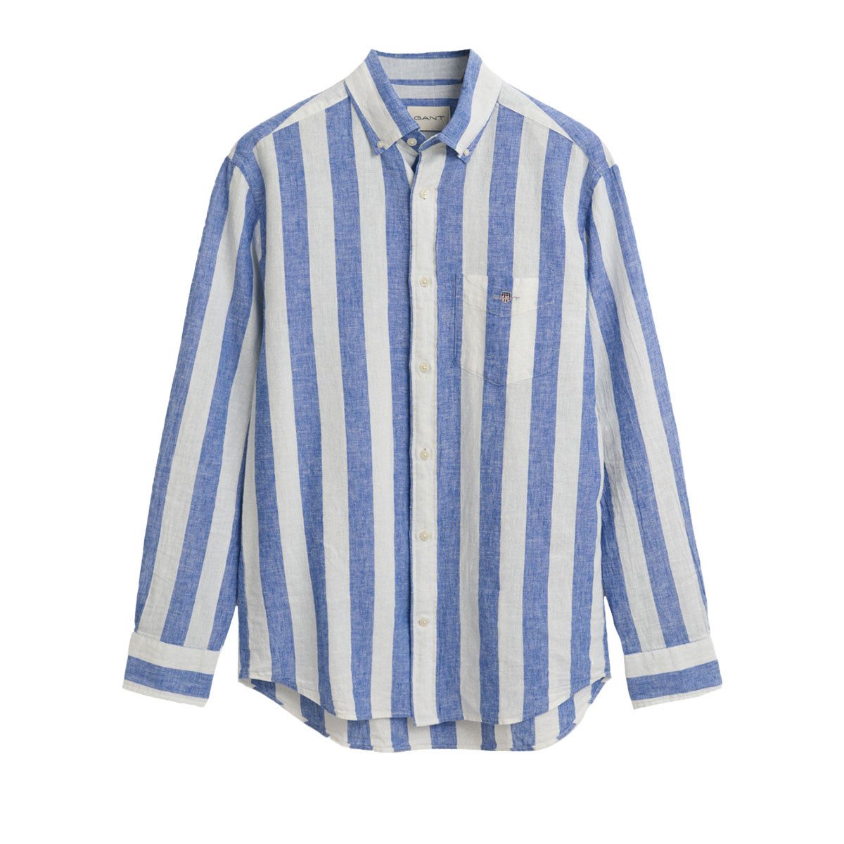 Die markanten vertikalen Streifen verleihen dem Hemd einen zeitlosen, frischen Look. Das GANT-Logo auf der linken Brusttasche setzt einen dezenten, stilvollen Akzent. Mit seinem Button-Down-Kragen und der klassischen Passform ist dieses Hemd vielseitig kombinierbar und eignet sich sowohl für elegante Freizeitlooks als auch für besondere Anlässe. Dank des atmungsaktiven Leinens ist es besonders angenehm zu tragen und somit ideal für warme Tage.
