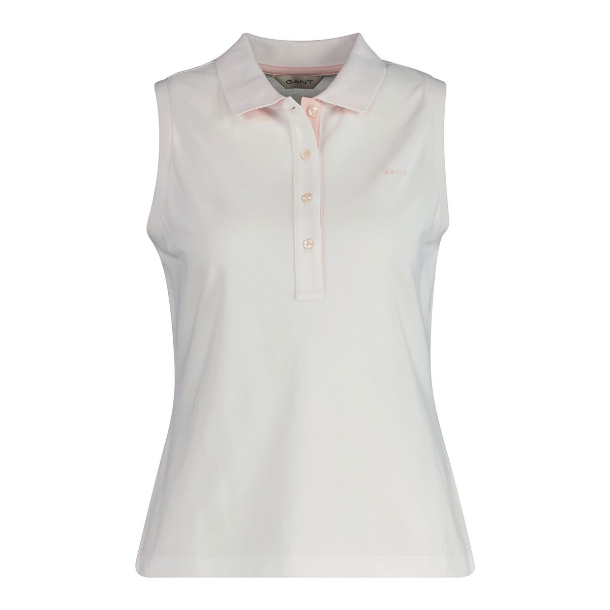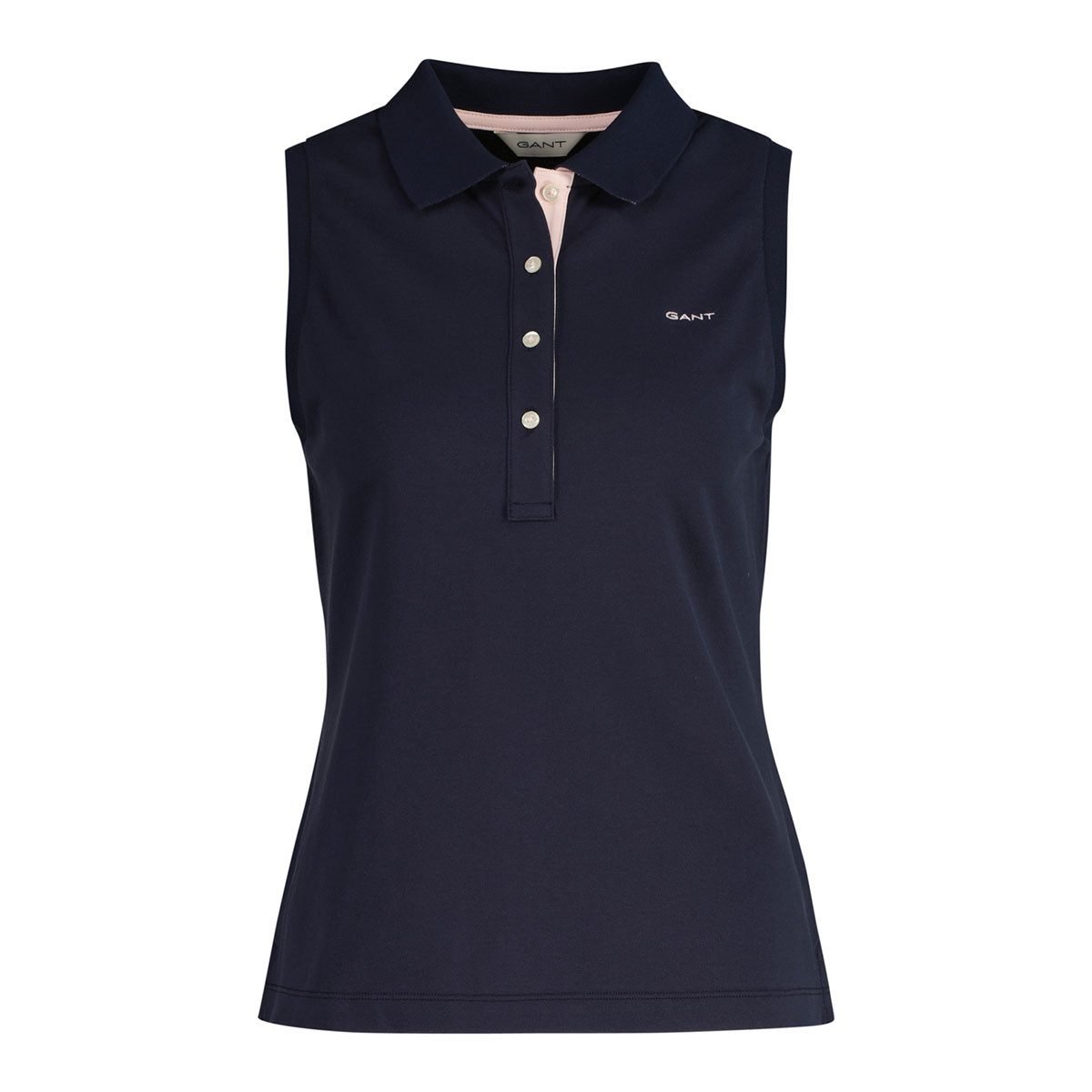 Dieses ärmellose Poloshirt von GANT ist die perfekte Kombination aus zeitlosem Design und sommerlicher Leichtigkeit. Durch das ärmellose Design kommen die Schultern besonders schön zur Geltung, was dem Shirt eine feminine und stilvolle Ausstrahlung verleiht. Der klassische Polokragen und die dezente Knopfleiste mit drei Knöpfen runden den sportlich-eleganten Look ab.