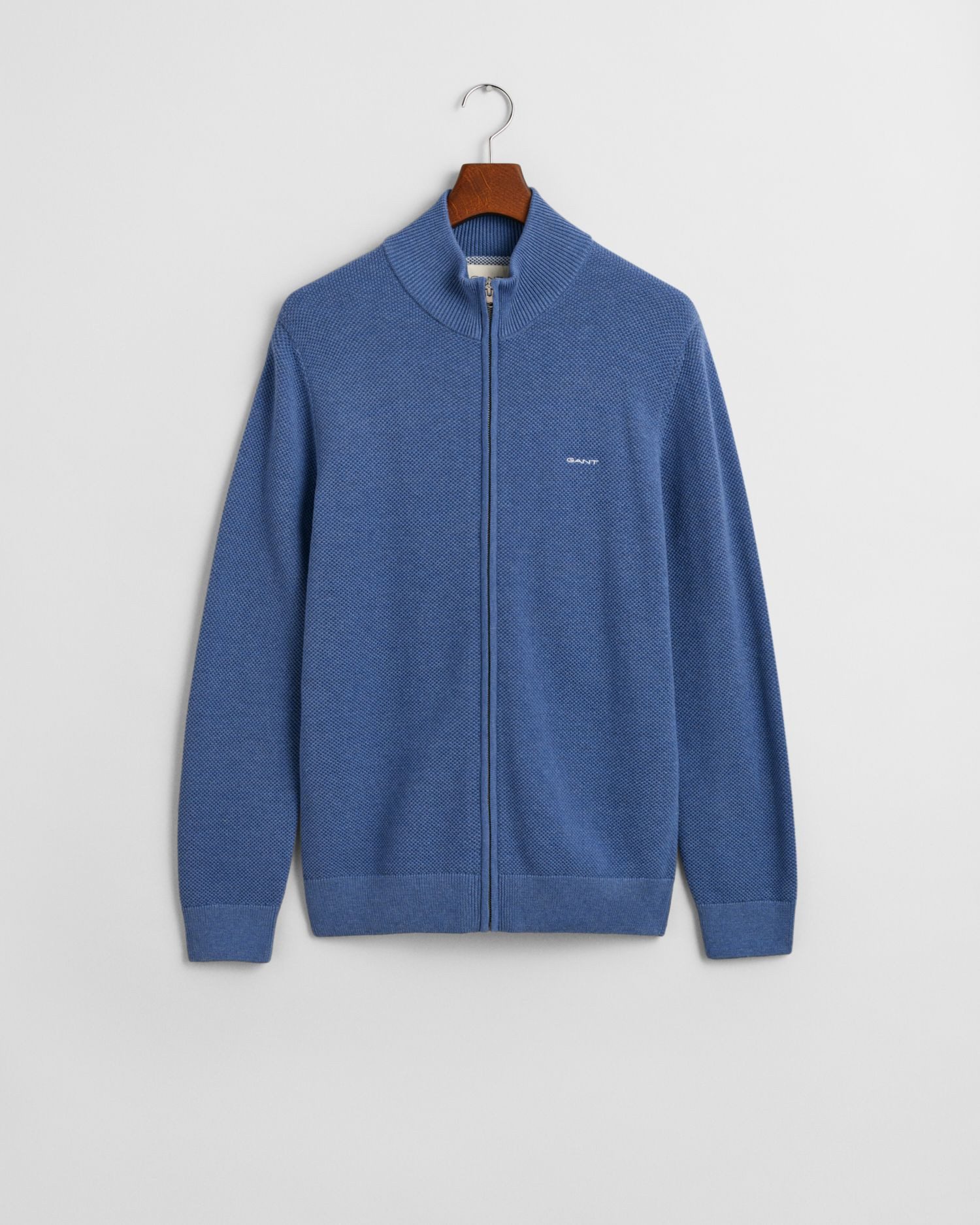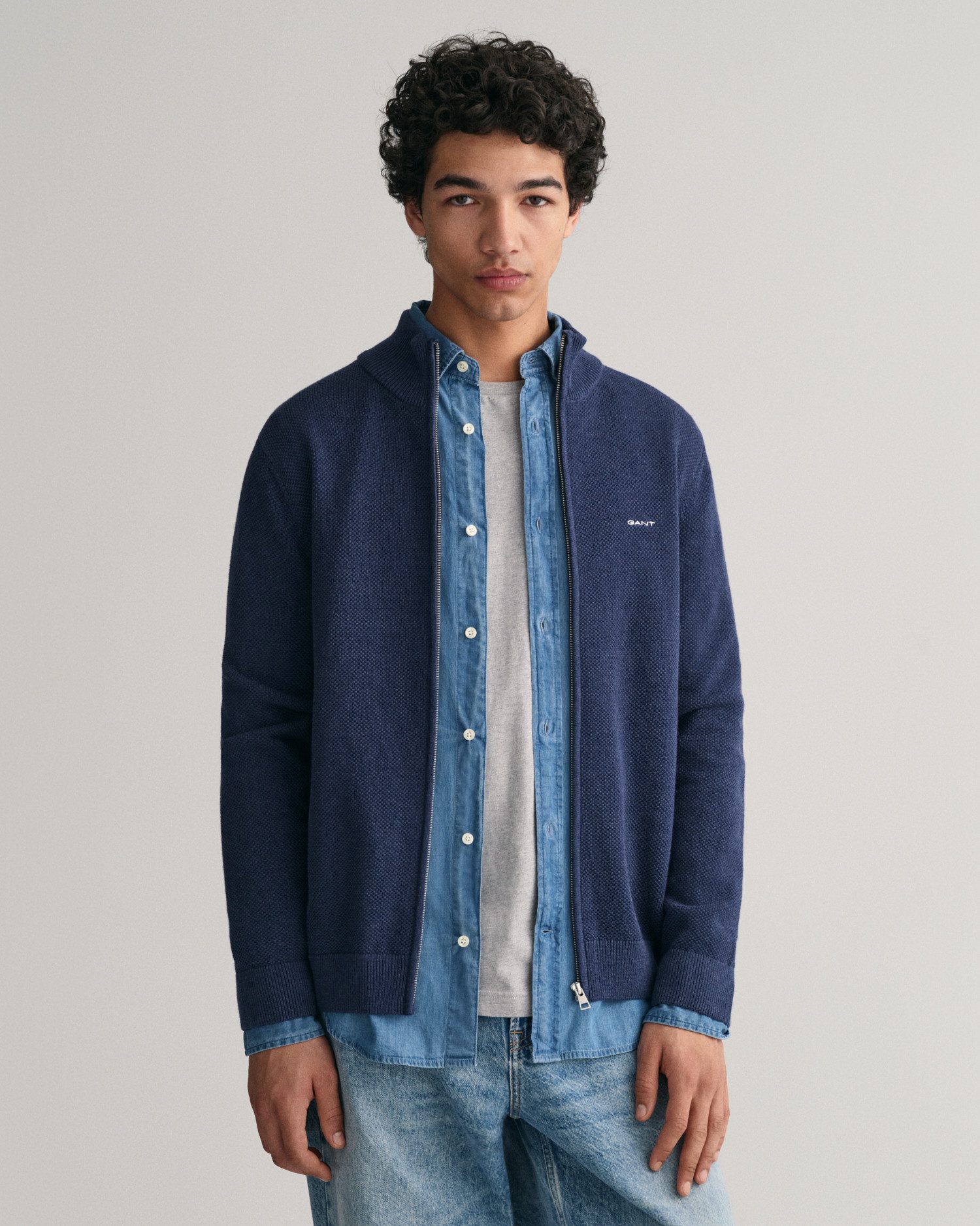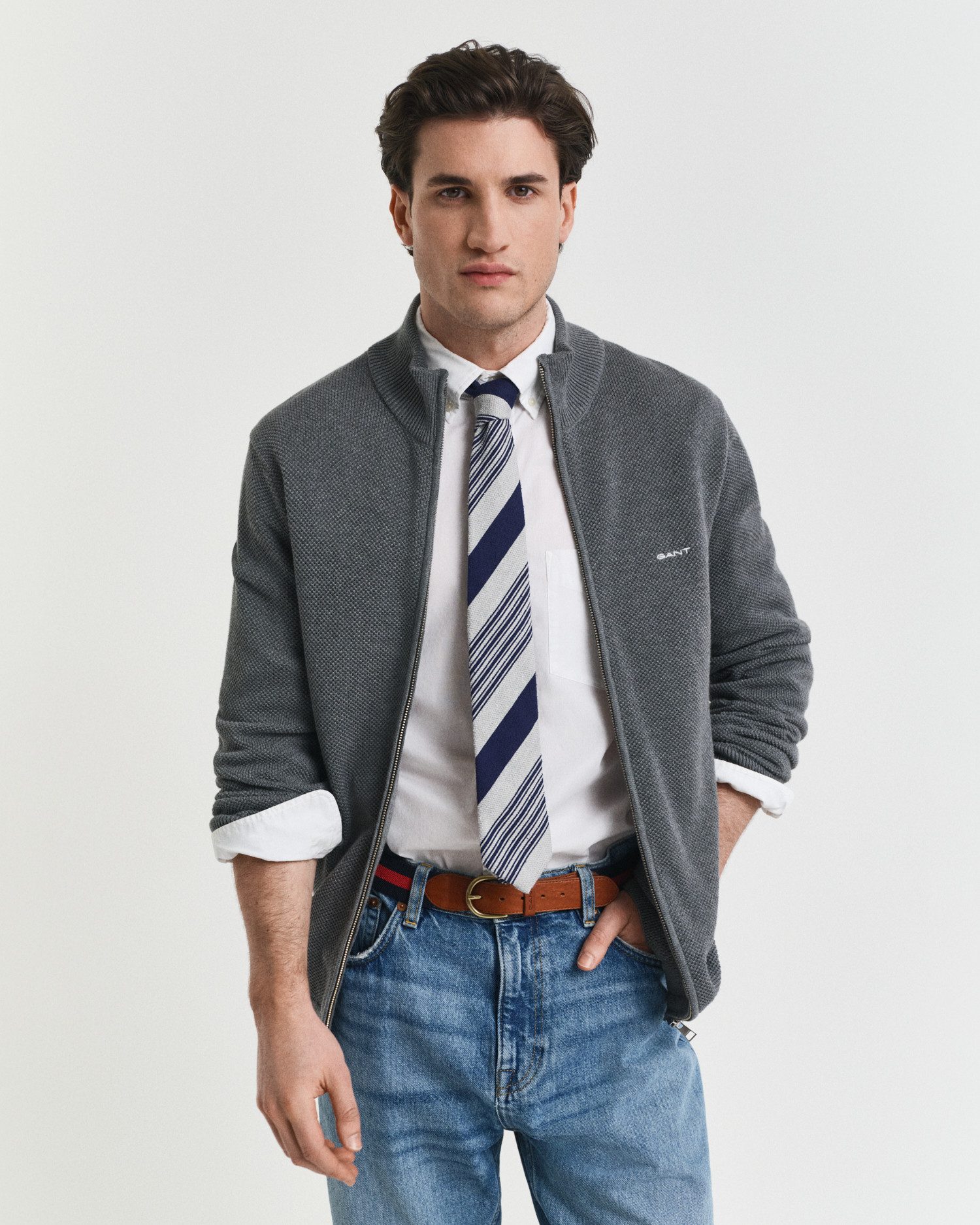 Mit Bluse kombiniert für die Arbeit oder bequem für entspannte Stunden — die Herren-Strickjacke »COTTON PIQUE ZIP CARDIGAN« von Gant ist eine gute Idee für deine Outfits!
