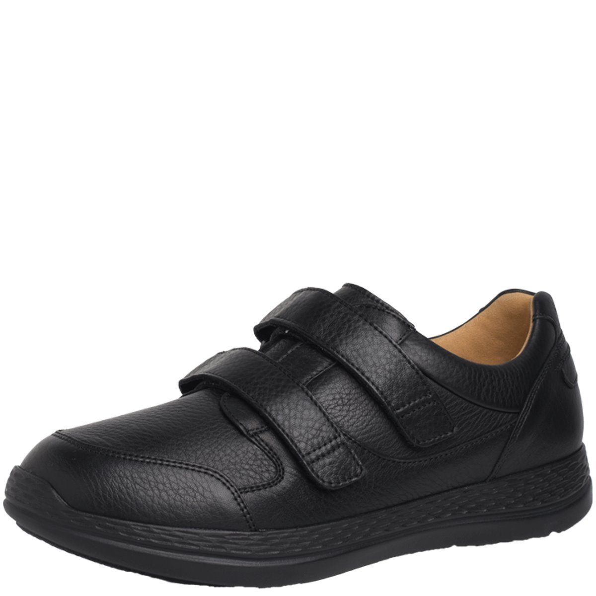 Dieser Vario Sensitiv- Kletthalbschuh aus genarbtem, schwarzem Glattleder ist der ideale Begleiter für Herren mit anspruchsvollen und sensiblen Füßen, sowohl im Beruf als auch in der Freizeit.