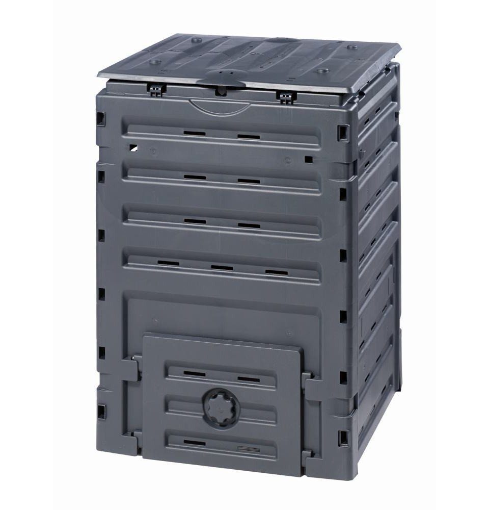 ECO- Master Komposter mit optimalem Belüftungssystem für Ihren Kompost. Die große einteilige Einfüllöffnung ermöglicht das bequeme Befüllen des Behälters. Der Aufbau ist ohne Werkzeug durchführbar und somit denkbar einfach. Der Komposter ist aus 100% Recyclingmaterial hergestellt.