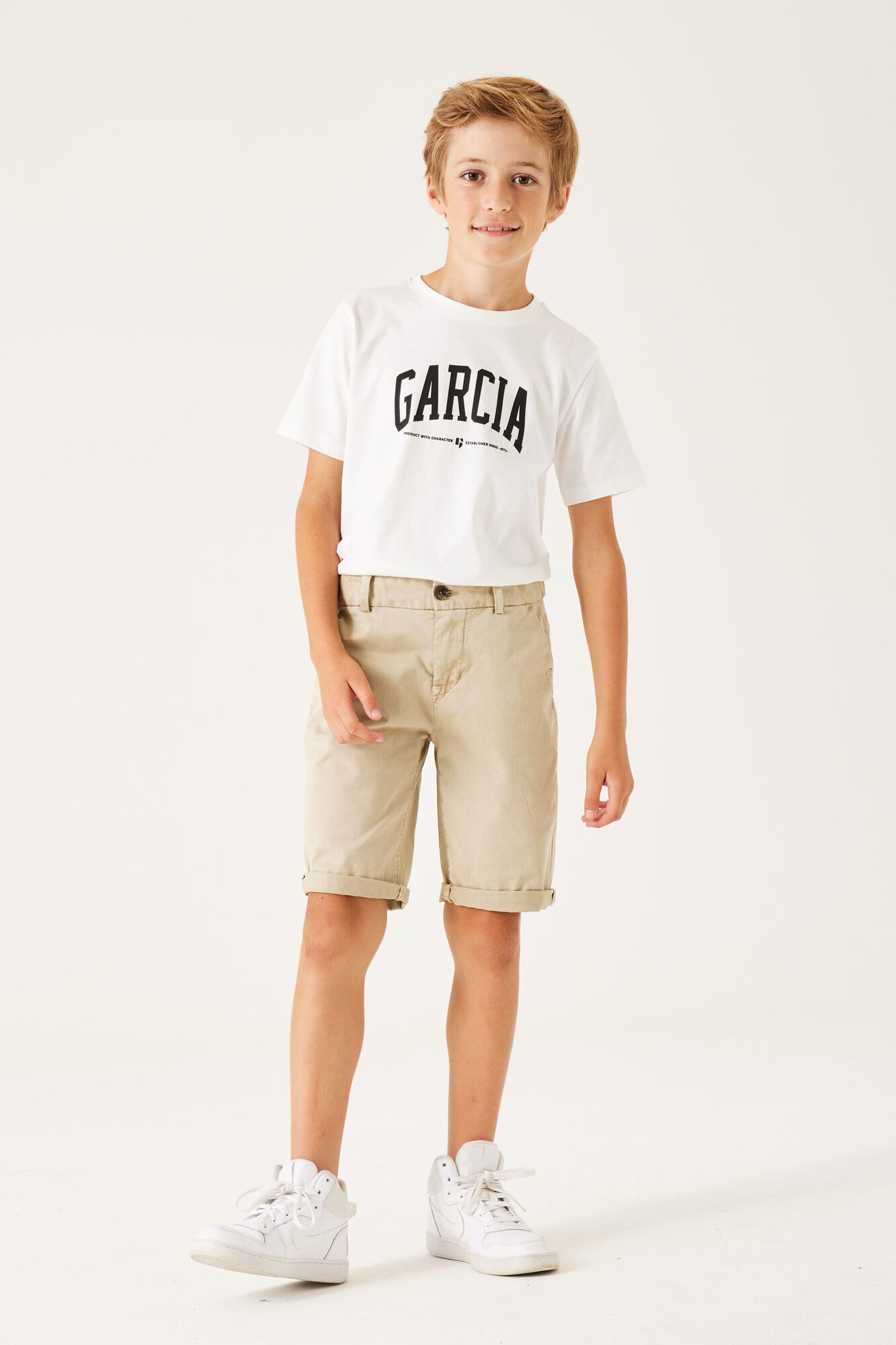 Neue Styles zu kombinieren wird mit den Bermudas von Garcia ganz einfach. Ein angesagtes Detail ist der Aufschlag. Die gerade Passform der Jungen-Hose liegt leicht an ohne einzuengen.