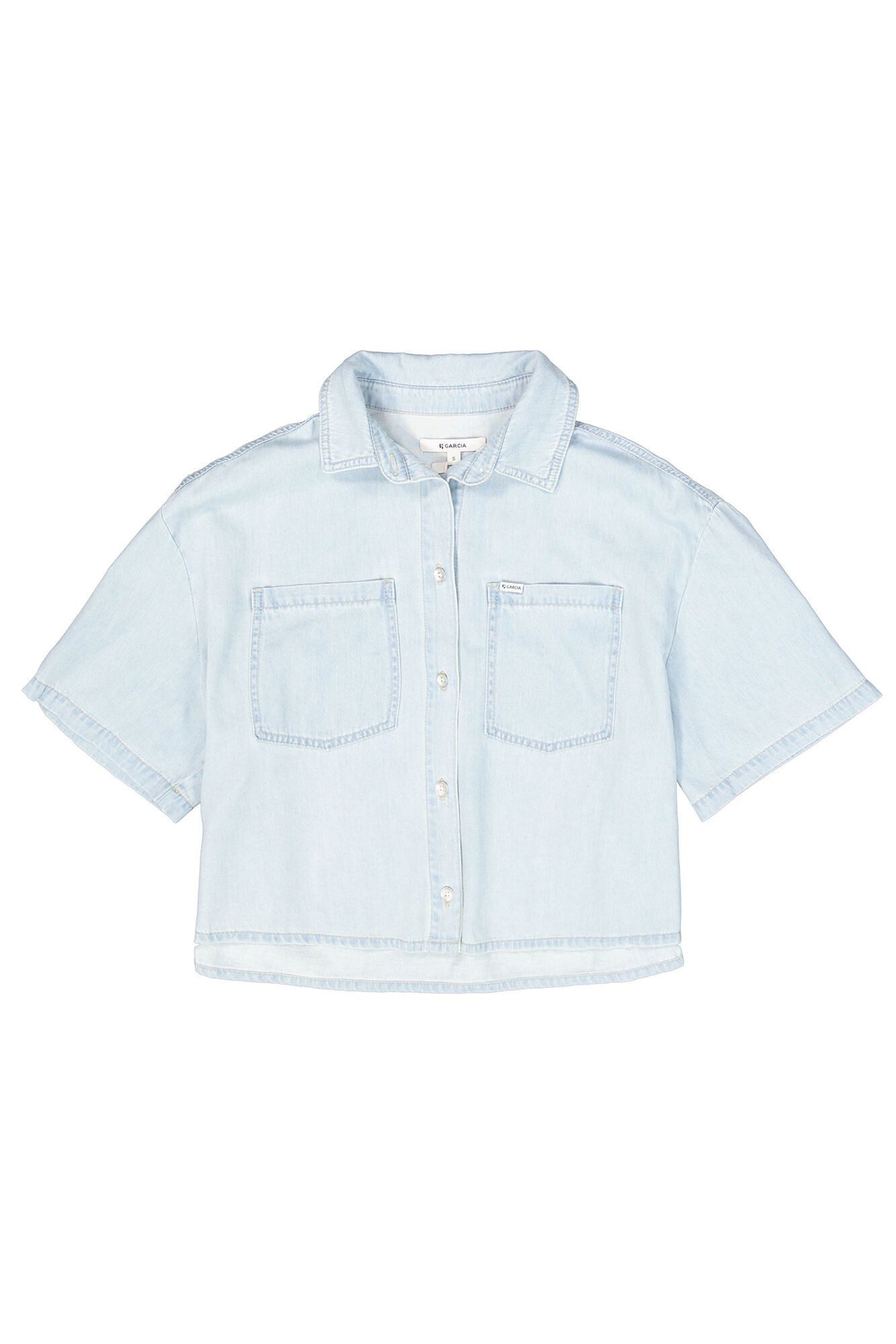 Diese Denim-Bluse in trendigem Bleached-Ton bringt frischen Schwung in deine Garderobe. Der legere Schnitt, die kurzen Ärmel und der klassische Kragen machen sie zum idealen Begleiter für entspannte Alltagslooks. Zwei aufgesetzte Brusttaschen und die durchgehende Knopfleiste verleihen ihr eine authentische Jeans-Optik. Hergestellt aus reiner Baumwolle und unterstützt durch die Better Cotton Initiative – für Stil mit Verantwortung.