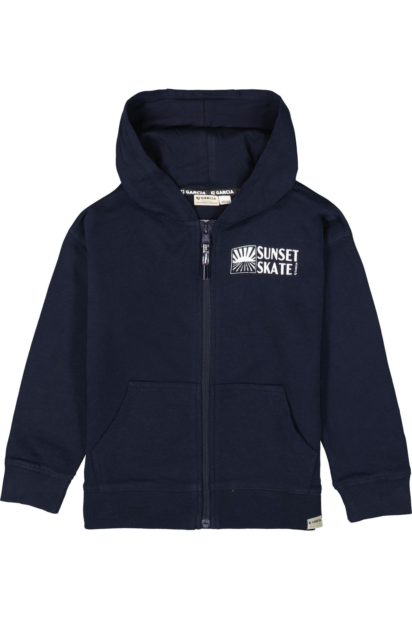 Die Garcia Sweatjacke für Kinder kombiniert stilvolles Design mit hoher Funktionalität und ist perfekt für den Alltag geeignet. Aus 100% Baumwolle gefertigt, bietet sie optimalen Tragekomfort und Atmungsaktivität, ideal für aktive Kinder. Mit ihren coolen Grafiken auf Brust und Rücken sowie der praktischen Kapuze und Seitentaschen eignet sich die dunkelblaue Jacke sowohl für den Kindergarten als auch für Freizeitaktivitäten. Sie ist langlebig, pflegeleicht und lässt sich vielseitig zu unterschiedlichen Outfits kombinieren, was sie zu einem unverzichtbaren Kleidungsstück in der Garderobe jedes Kindes macht.